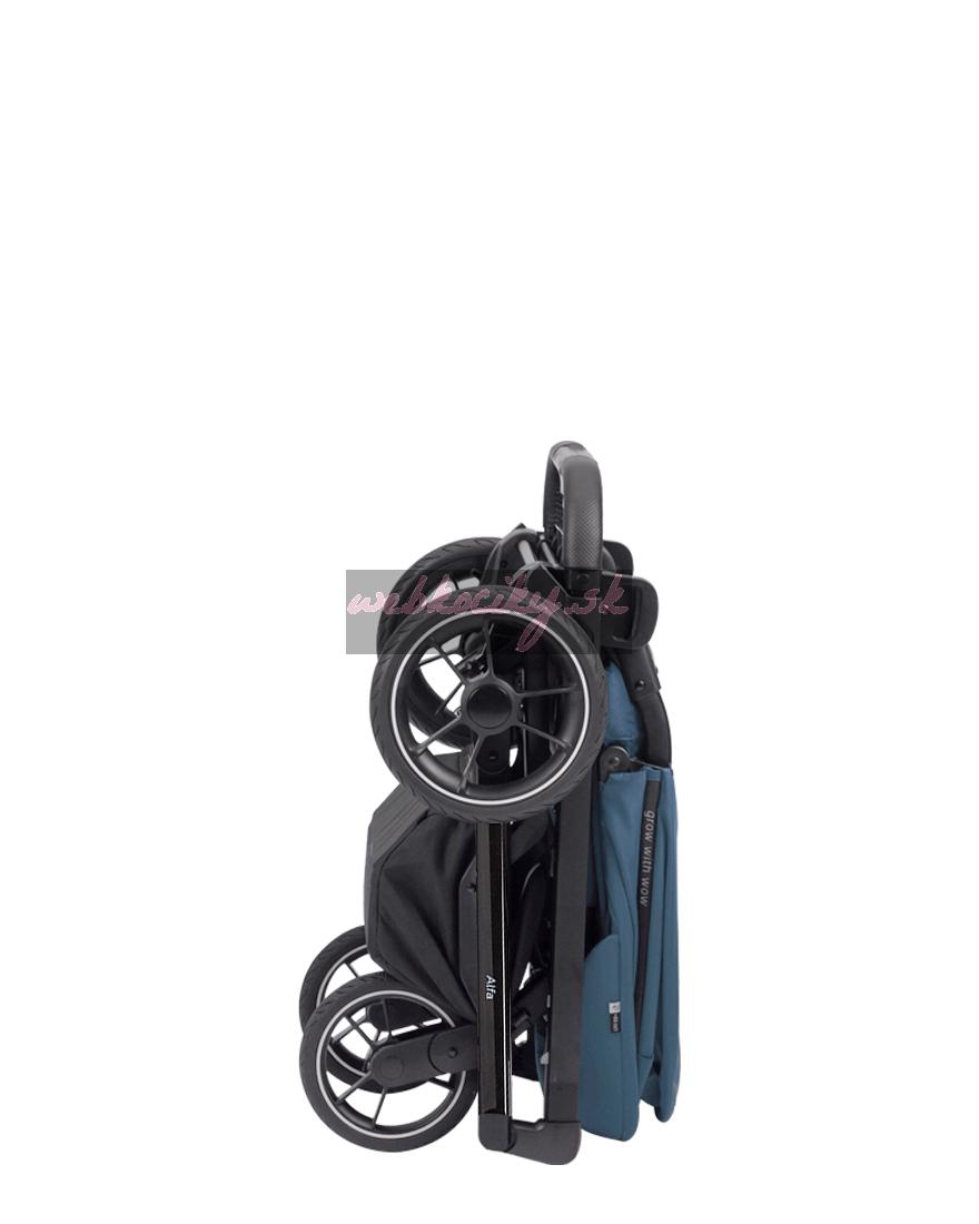 Po zložení stojí vertikálne aj horizontálne na štyroch kolieskach. Kočík je chránený proti náhodnému zloženiu a rozloženiu.