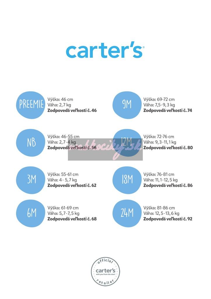 Všetky modely značky Carter‘s sú vyrobené s množstvom lásky. Overaly sú perfektné pre štart Vašej výbavičky a určite by nemali chýbať v žiadnom šatníku dieťatka. Navrhnuté sú tak aby boli veľmi pohodlné.