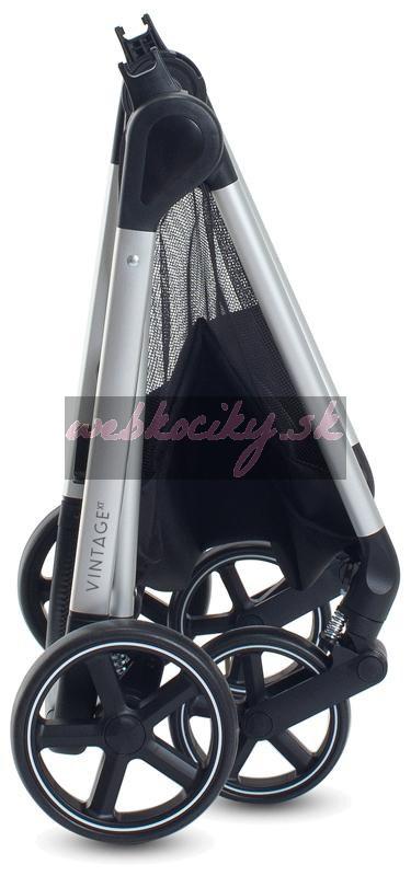Nový kočík Vintage XT je veľmi praktický a ľahký a je kompatibilný s prenosnou autosedačkou baby 0+2. Kočík je stavaný na pokrytie všetkých potrieb dieťaťa počas rôznych fáz rastu. Má veľkú výsuvnú striešku s vetracím oknom , ktoré po otvorení ešte rozšíri striešku. Poskytuje veľké pohodlie vďaka svojmu širokému a čalúnenému interiéru a nastaviteľnému operadlu do 4 polôh, s možnosťou odpočinku v úplne horizontálnej polohe. Mäkké a priedušné látkové operadlo uľahčuje vetranie pre pohodlie dieťaťa počas horúcich mesiacov. Má výškovo nastaviteľné riadidlá s imitáciou kože a nastaviteľnou opierkou pre nohy. Sedačka je reverzibilná a môže byť zložená v oboch smeroch. Po zložení je veľmi kompaktný a ľahko sa prepravuje. Zahŕňa veľkokapacitný spodný kôš s ľahkým prístupom.