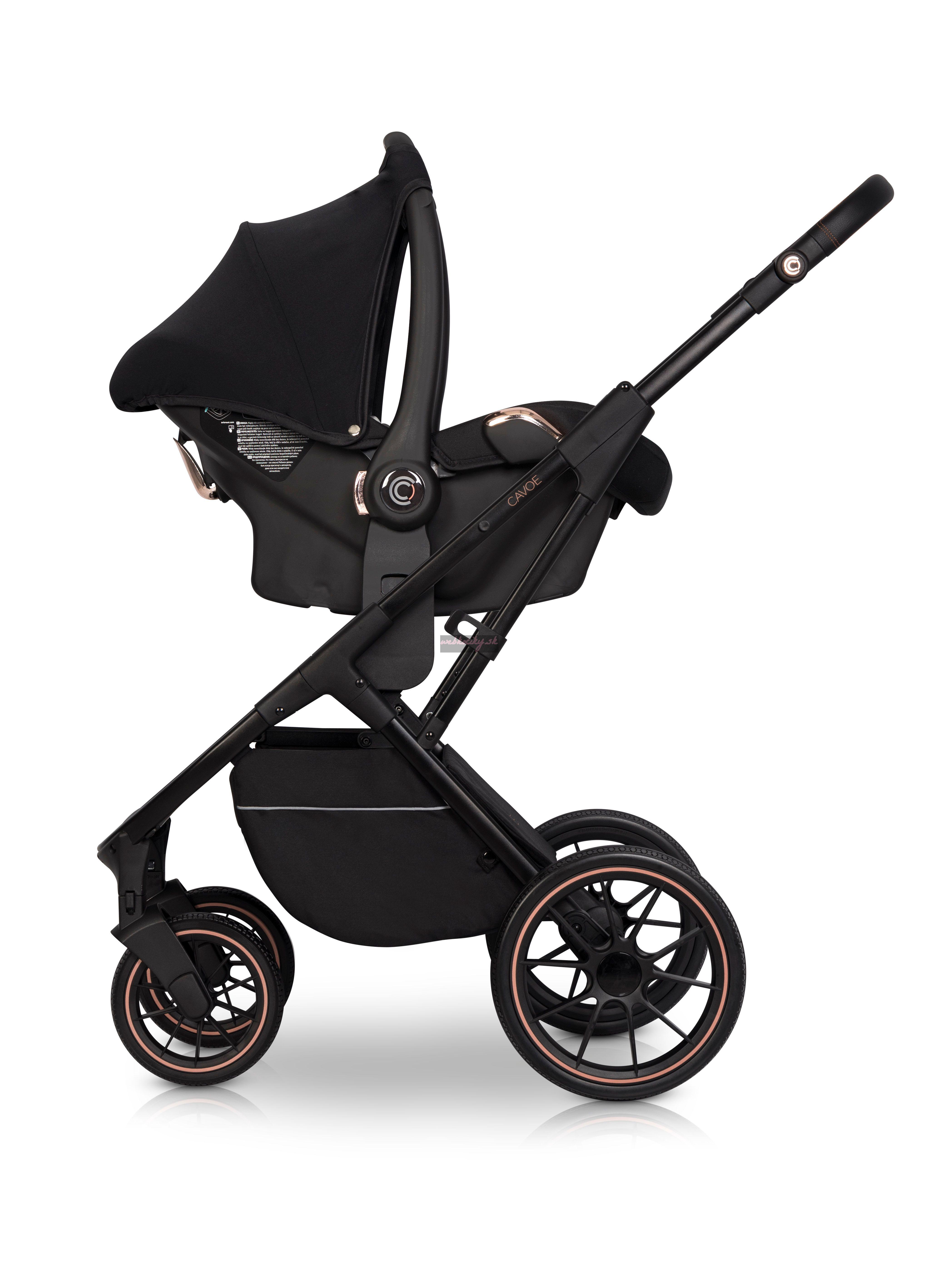 Dvojkombináciu kočíka AXO doplníte o bezpečnú autosedačku pre bábätká CAVO. Ku konštrukcii ju pripevníte pomocou adaptéra. Rám kočíka je kompatibilný aj s inými značkami autosedačiek.