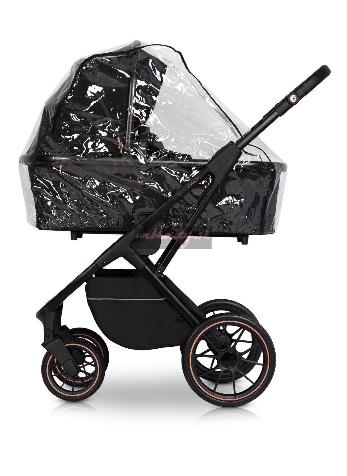Súčasťou kočíka je pláštenka pre hlbokú aj športovú korbu, ktorá neprepustí ani kvapku vody. Vďaka priehľadnému prevedenie naviac stále udržujete kontakt s bábätkom.
