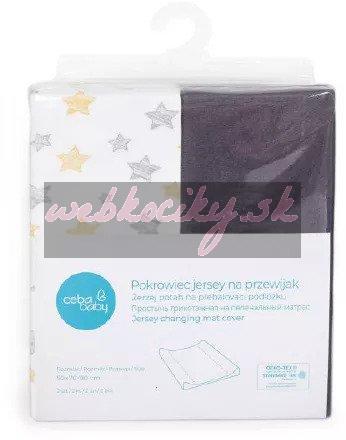 Ceba Baby Poťah na prebaľovaciu podložku 50x70-80cm Light grey + Yellow Stars 2ks