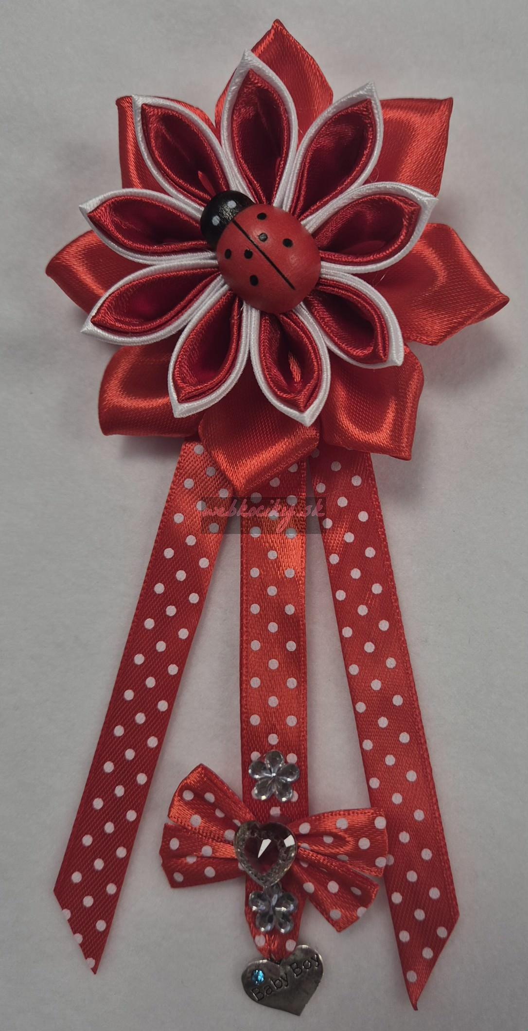Červená stužka - mašlička na kočík proti urieknutiu - lienka Baby Boy
