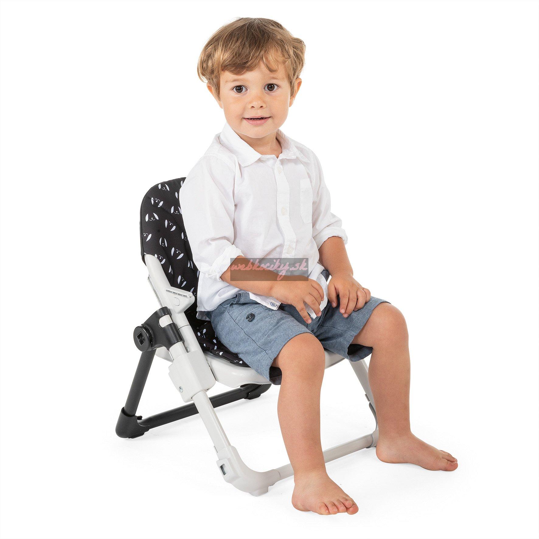 Chicco Chairy je jediný podsedák, ktorý transformujete z jedálenskej stoličky na detskú stoličku, ktorá môže byť umiestnená na podlahe a dieťa sa tak môže hrať až do 3 rokov.
