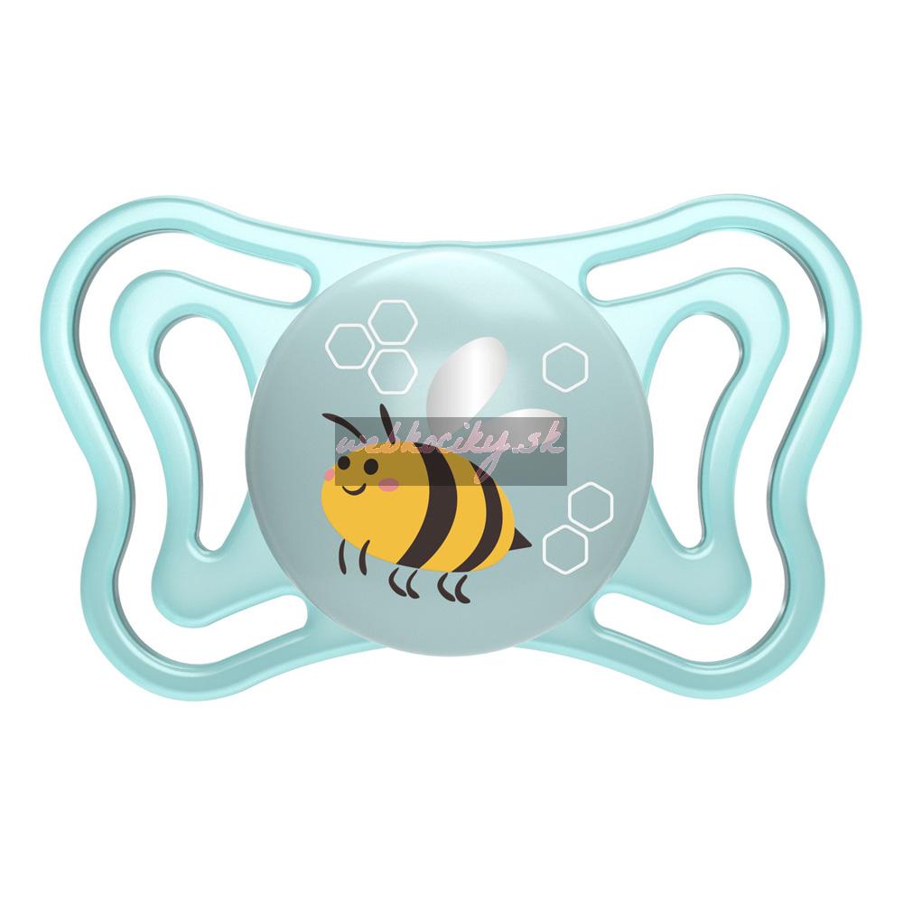 • extrémne mäkká zúžená pätička cumlíka umožňuje dieťaťu zavrieť ústa a redukuje riziko nerovnomerných zubných oblúkov (je ortodonticky korektná)