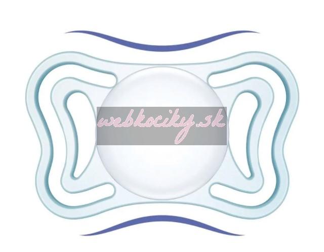 - extrémne mäkká zúžená pätička cumlíka umožňuje dieťaťu zavrieť ústa a redukuje riziko nerovnomerných zubných oblúkov (je ortodonticky korektná)