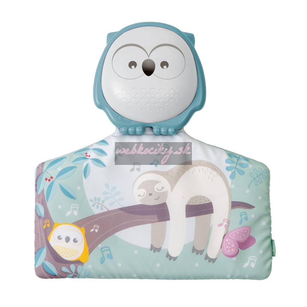 Látková podložka 2v1 s elektronickým modulom v dizajne sovičky, ktorý sa vie zmeniť aj na nočné svetielko upevniteľné na postieľku.