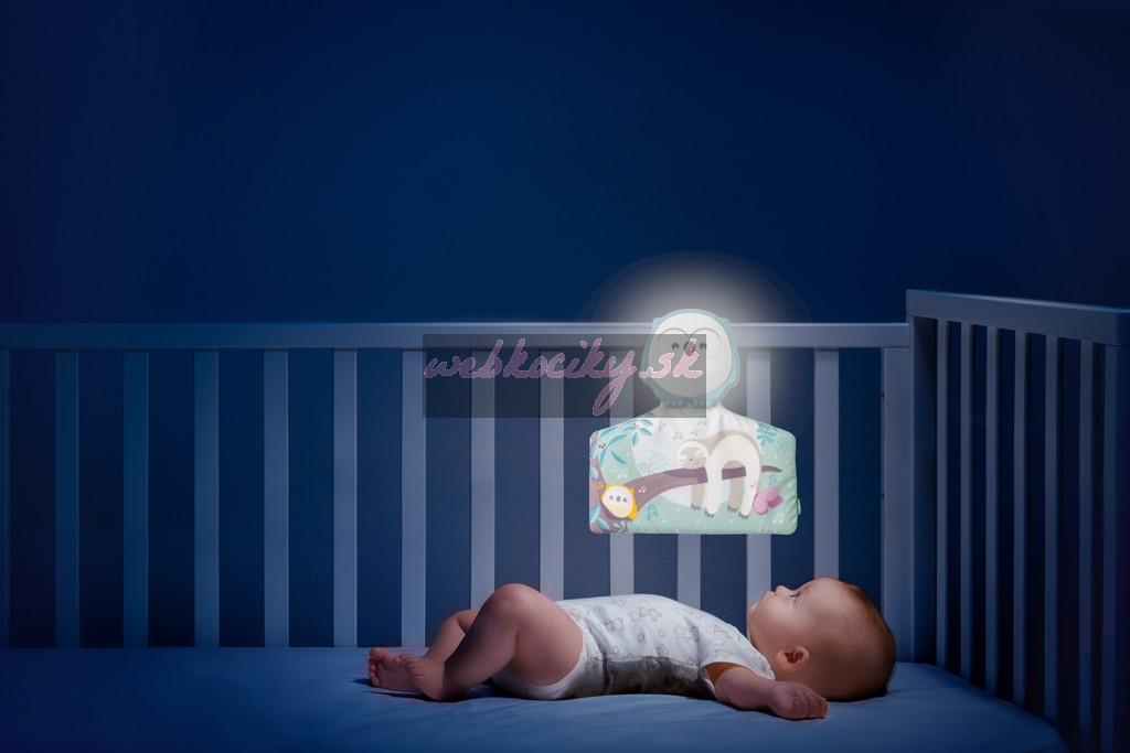 - Nočný režim: panel možno odstrániť z podložky a stane sa nočným osvetlením, ktorý sa ľahko pripevní na postieľku alebo kamkoľvek potrebujete. Stlačením 3 spúšťačov začne hrať relaxačnú hudbu spolu s jemným nočným svetlom