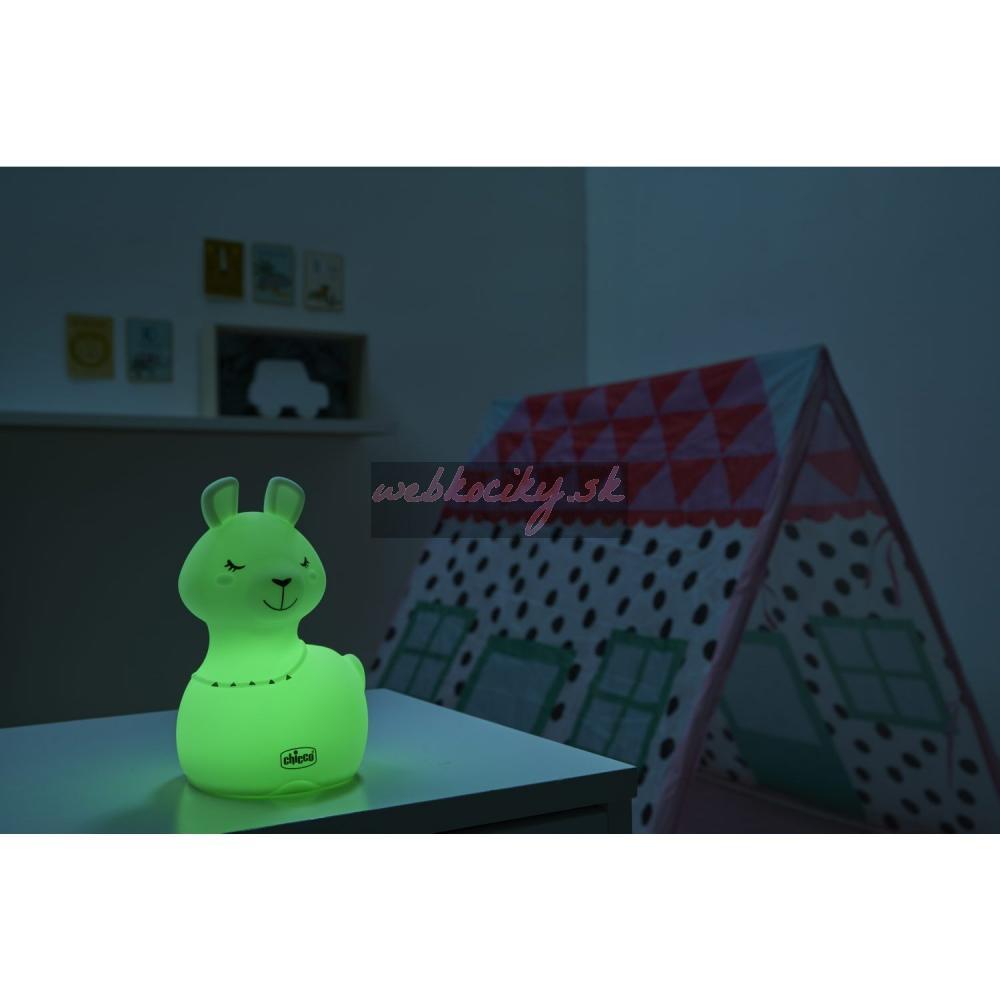 Čarovné svetlo nočnej lampy Chicco Sweet lights bude sprevádzať vaše dieťa do ríše snov! Detská nočná lampa Chicco Sweet lights v roztomilom tvare lamy navodí príjemnú atmosféru, a tak upokojí dieťa počas zaspávania a spánku. Má 8 farebných tónov, ktoré sa menia automaticky alebo pri dotyku postavičky. Vyrobená z mäkkého pružného a odolného silikónu, neprehrieva sa, takže je bezpečná aj pre tých najmenších. Nočné svetielko pre deti Chicco Sweet lights je bezdrôtové, dobíjateľné cez štandardný USB kábel, takže ho môžete pohodlne prenášať kamkoľvek so sebou.
