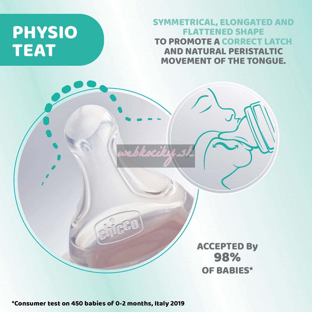 Chicco Perfect 5 je bio-funkčná dojčenská fľaša, ktorá sa prispôsobuje potrebám vášho dieťaťa vďaka intuitívnemu systému tečenia: inovatívny systém bol navrhnutý tak, aby podporoval a vedel sa prispôsobiť fyziologickému saniu každého dieťaťa, aby sa počas a po kŕmení cítilo spokojné a uvoľnené.