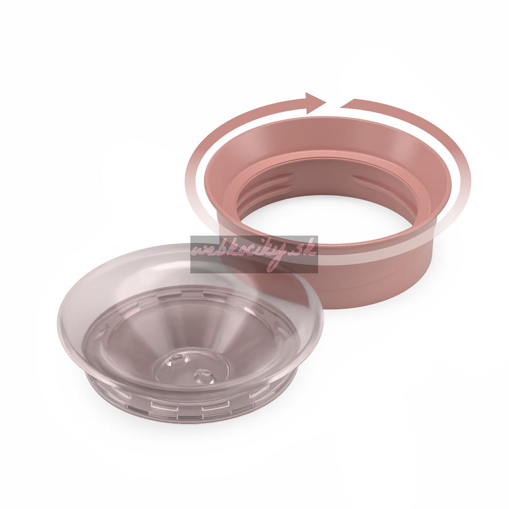 - Hrnček 360° má silikónovú membránu, ktorá sa aktivuje pri kontakte s perami dieťaťa umožňujúc mu piť priamo z okraja hrnčeka ako z pohára, ale bez obavy z rozliatia. Ideálne pre deti, ktoré sa učia piť samostatne.