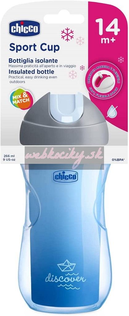 CHICCO Hrnček Sport termo so slamkou 266 ml modrý 14m+
