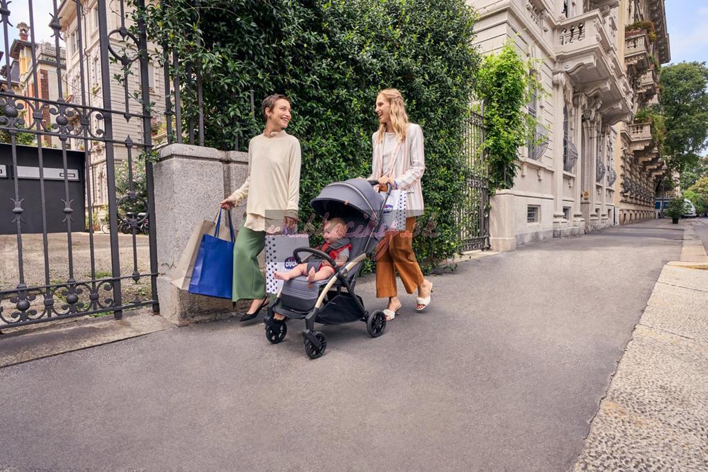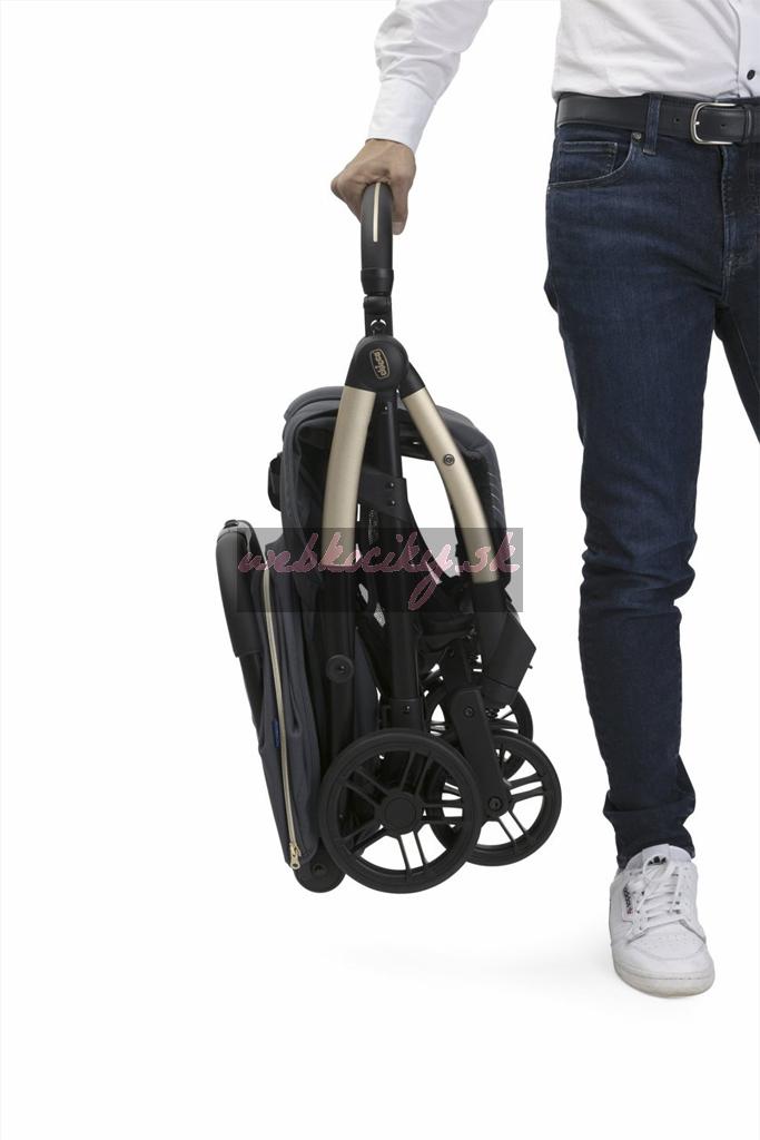 Stačí jeden dotyk a kočík sa sám zloží! Po zložení je skutočne kompaktný a stojí samostatne. Madlo sa dá tiež poskladať pre dosiahnutie väčšej kompaktnosti alebo môže byť použité ako rukoväť na prenášanie.