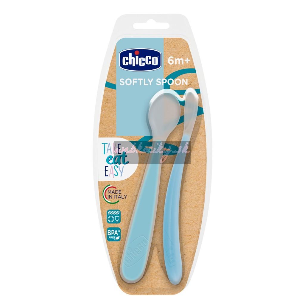 CHICCO Lyžička silikónová 2 ks modrá 6m+