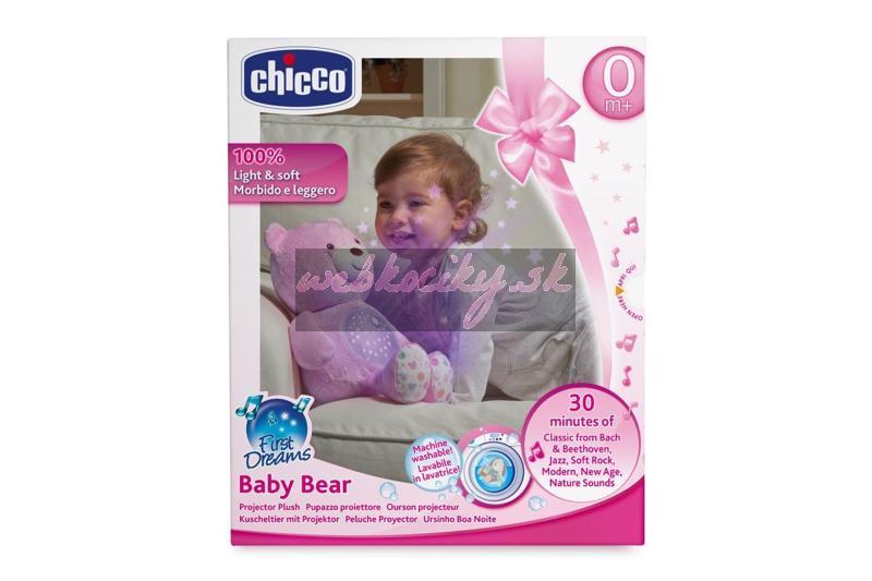CHICCO Medvedík uspávačik s projektorom a hudbou Baby Bear First Dreams - ružová 0m+