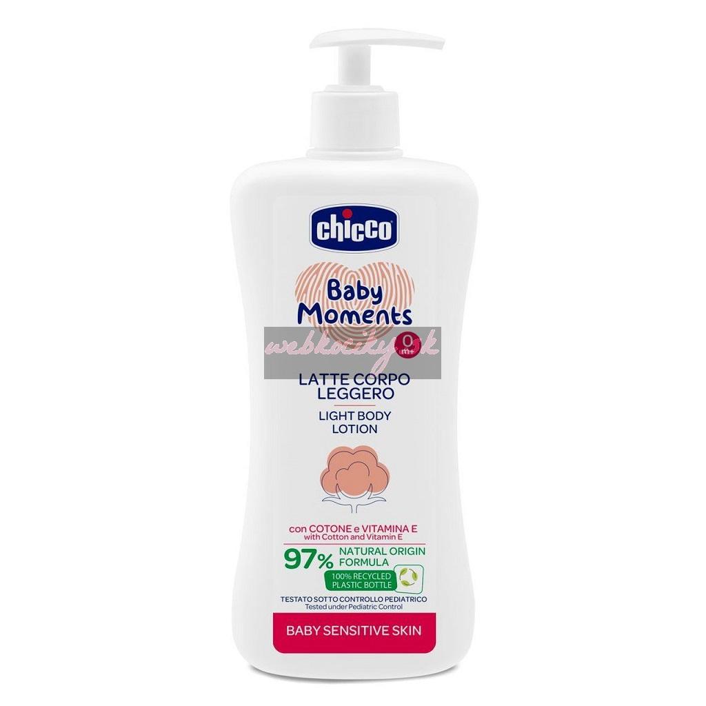 CHICCO Mlieko jemné telové s dávkovačom Baby Moments Sensitive 97 % prírodných zložiek 500 ml