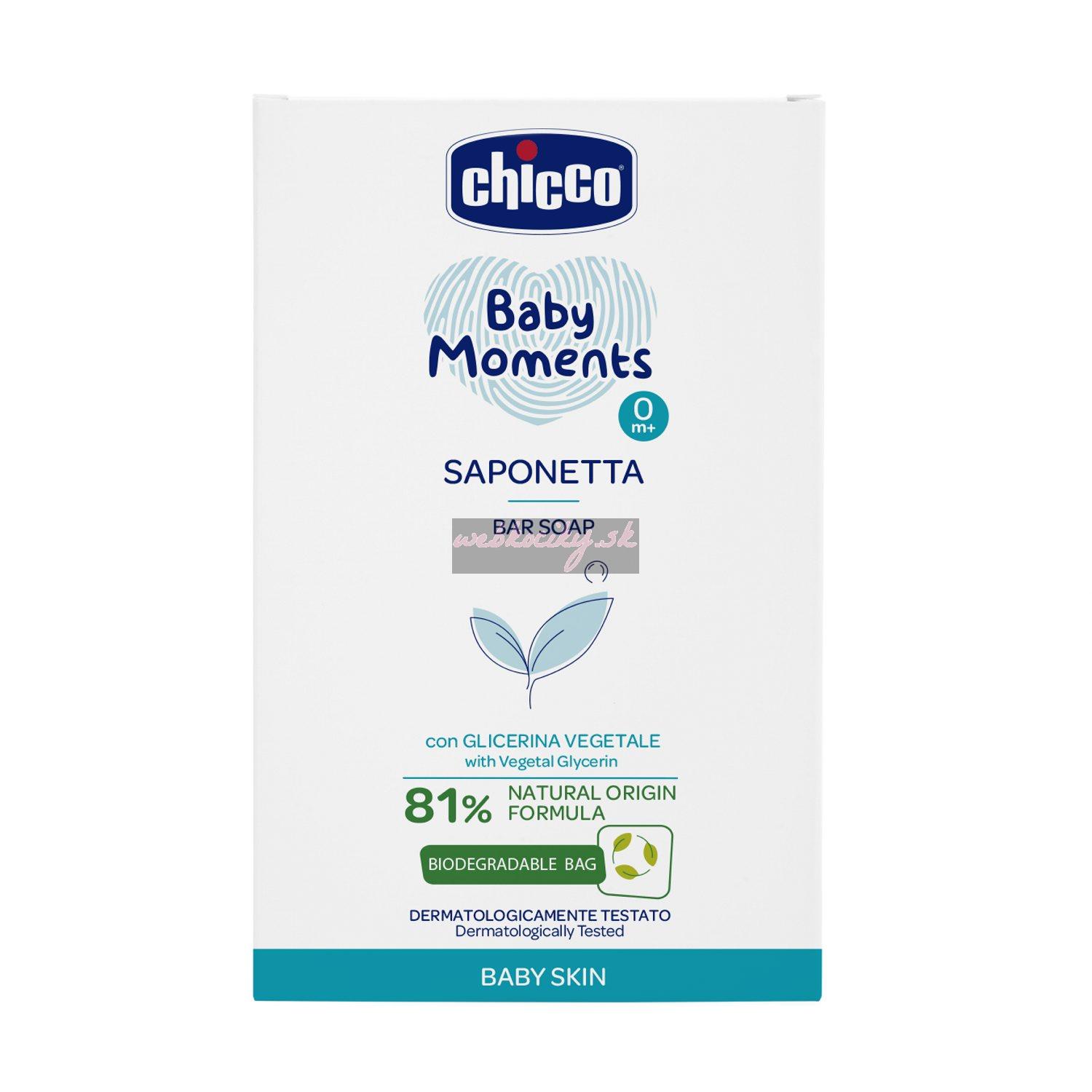 CHICCO Mydlo na ruky tuhé s rastlinným glycerínom Baby Moments 81 % prírodných zložiek 100 g