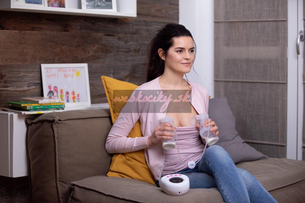 - Ergonomický dizajn odsávačky s naklonenými prsnými pohárikmi pre pohodlnú a pokojnú polohu počas odsávania.