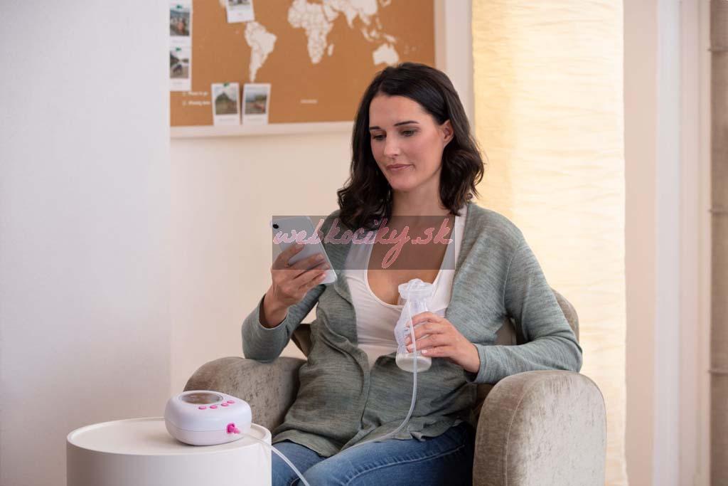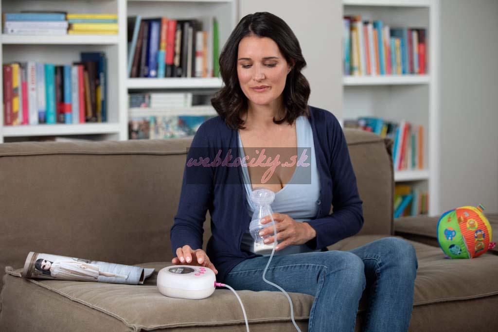 Odsávačka zobrazuje uplynulý čas i nastavenú úroveň. Umožňuje rytmus odsávania prispôsobiť až v 10 úrovniach intenzity odsávania. Je pritom tichá, takže ju možno použiť kedykoľvek a kdekoľvek. Jej mäkká, hebká silikónová vložka jemne priľne k vašim prsiam a masíruje prsník, čím napomáha extrakcii mliečka.