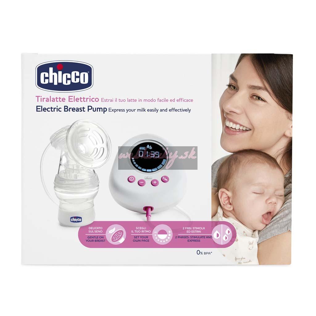 Elektronická odsávačka Chicco je špeciálne navrhnutá tak, aby odsávala materské mlieko tak jemne, ako je to len možné. Možno ju používať so sieťovým adaptérom, ale aj ako prenosnú odsávačku s alkalickými batériami typu AA.