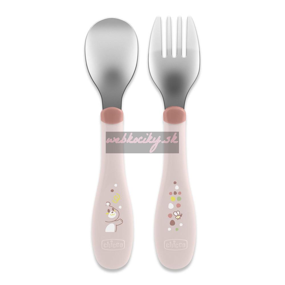 CHICCO Príbor detský z nerezovej oceli pink 18m+