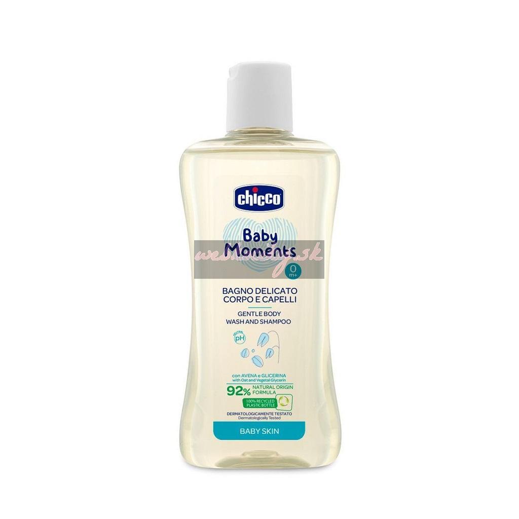 CHICCO Šampón jemný na vlasy a telo Baby Moments 92 % prírodných zložiek 200 ml