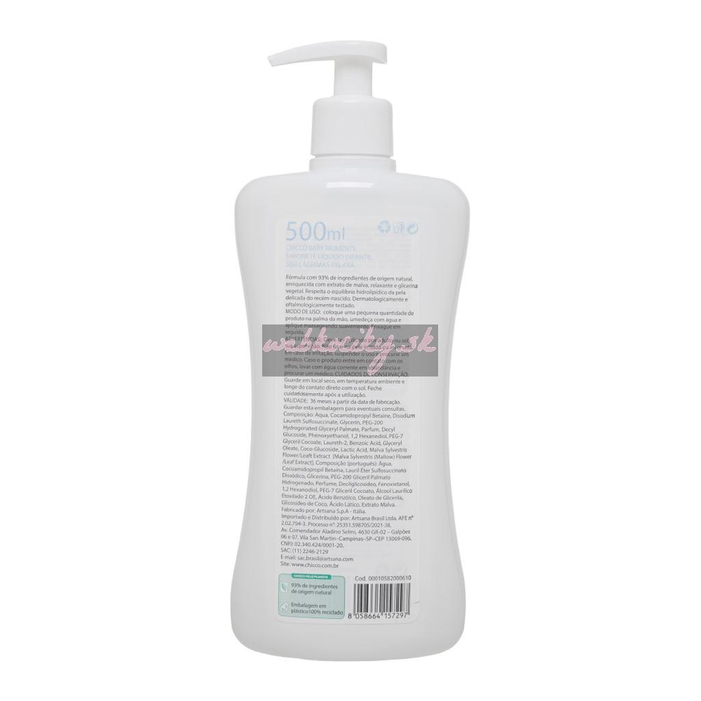 CHICCO Šampón na telo s dávkovačom Baby Moments Relax 93% prírodných zložiek 500 ml