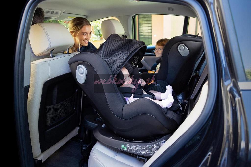 - Možnosť otočenia sedačky o 360° zabezpečuje otáčanie autosedačky v smere alebo proti smeru jazdy a uľahčuje prístup pri vkladaní a vyberaní dieťaťa z auta.