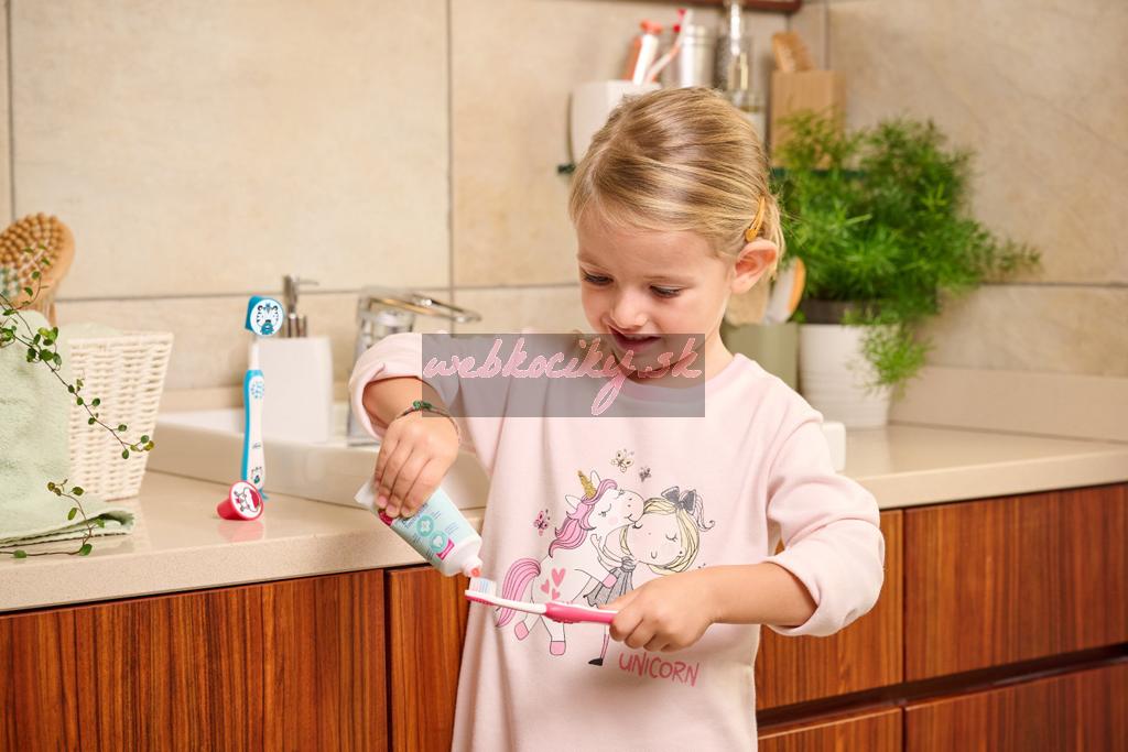 - Vďaka špeciálne tvarovanej hlave kefky s úzkym krkom nie je problém sa jednoducho dostať do všetkých miest v ústach dieťaťa