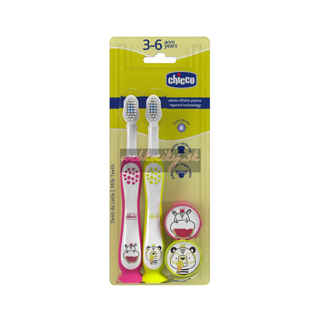 CHICCO Set zubných kefiek pre deti Hippo-Panda 3-6r, 2ks