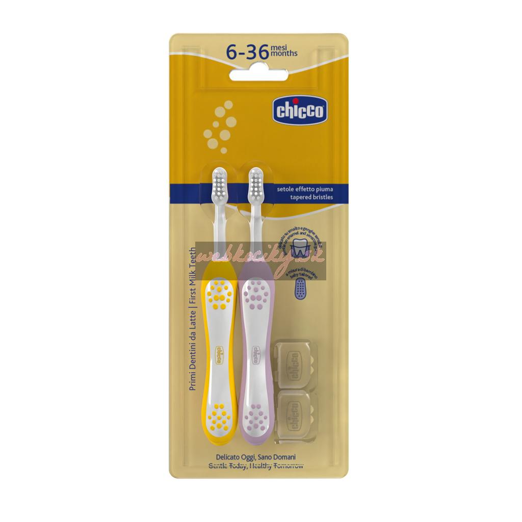 CHICCO Set zubných kefiek pre deti Lilac-Mustard 6-36m, 2ks