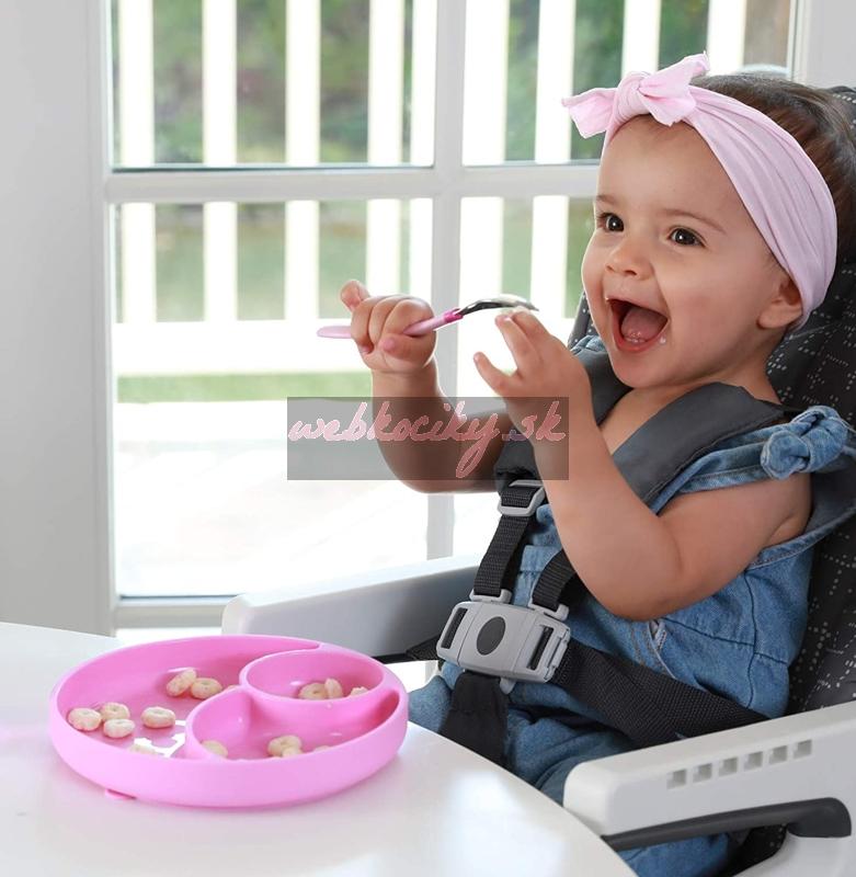 - Podstavec s prísavkou na spodnej strane taniera ho udrží na mieste aj pri prvých pokusoch o samostatné jedenie. To je veľmi dôležité pri rozvoji detskej motoriky. Napriek tomu je tanierik ľahký, flexibilný a prenosný aj na jedlo mimo domova.