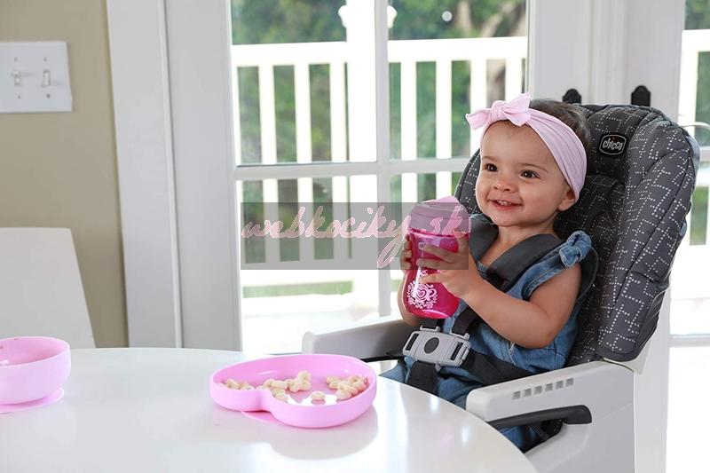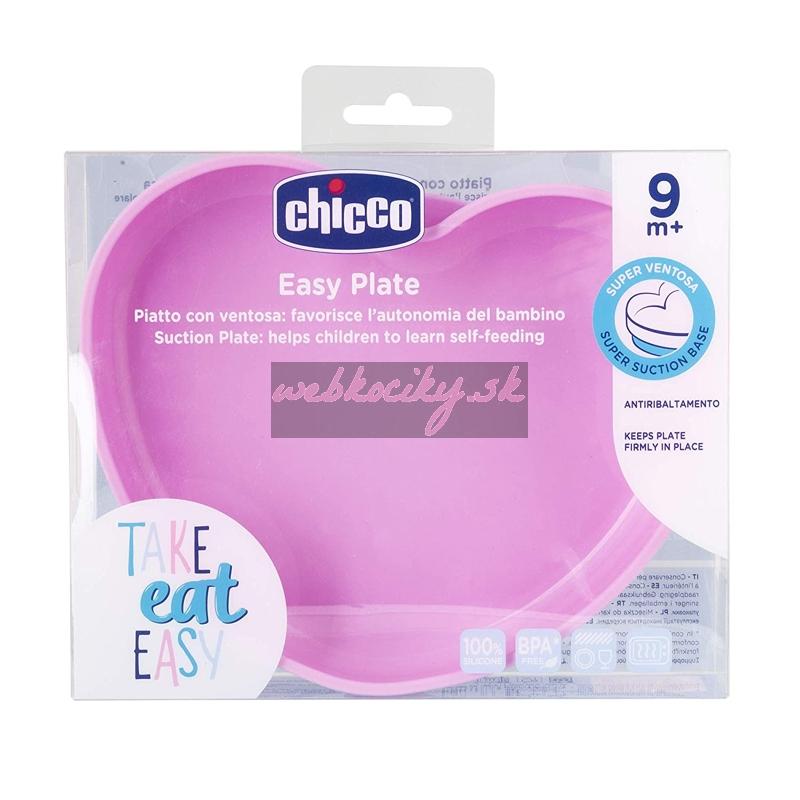 Silikónový tanier v tvare srdiečka z evolučnej rady Chicco Take Eat Easy určenej na dosiahnutie samostatnosti pri jedení je ideálny pomocník pre dieťa na ceste učenia sa jesť bez pomoci druhých.