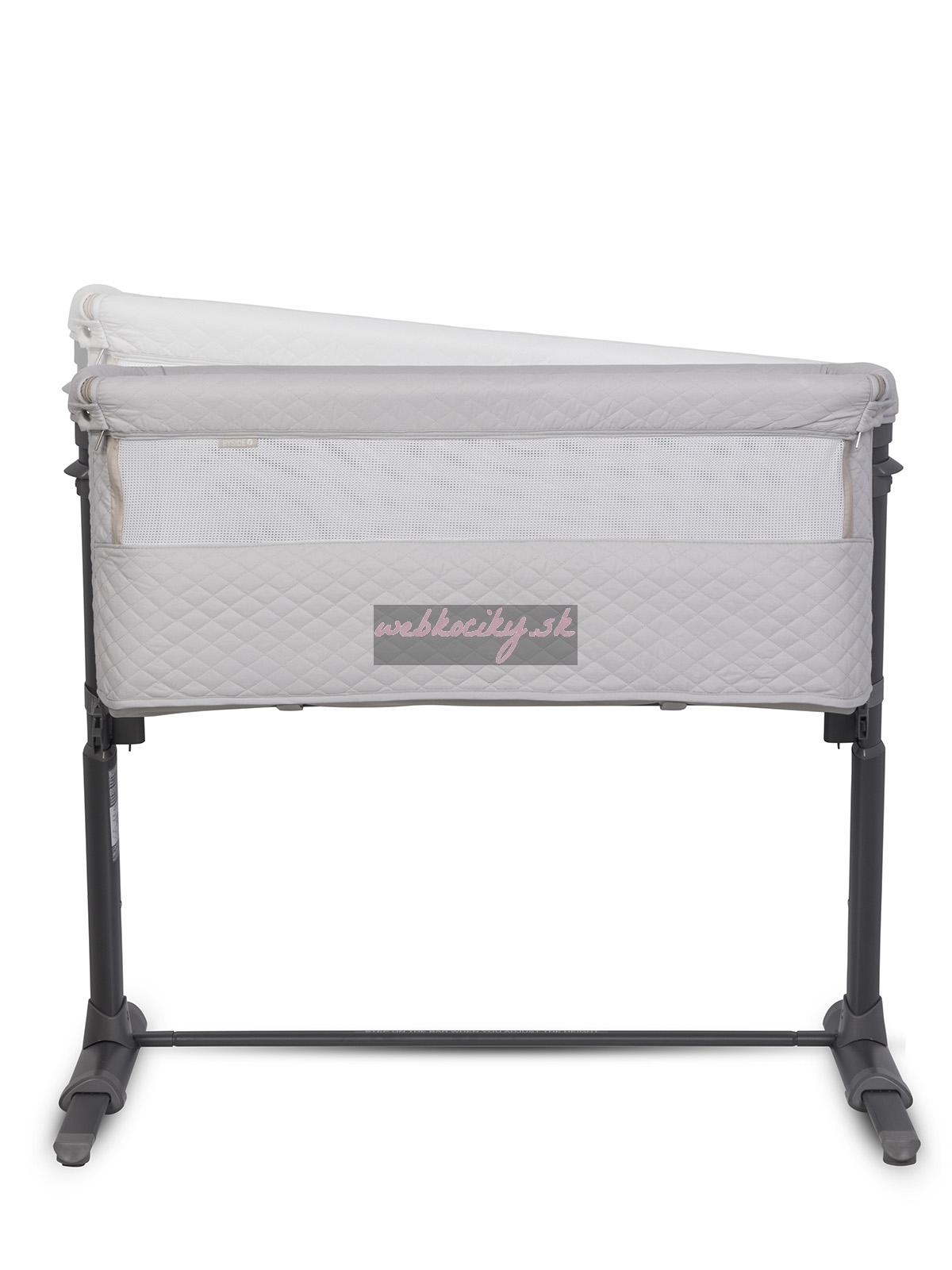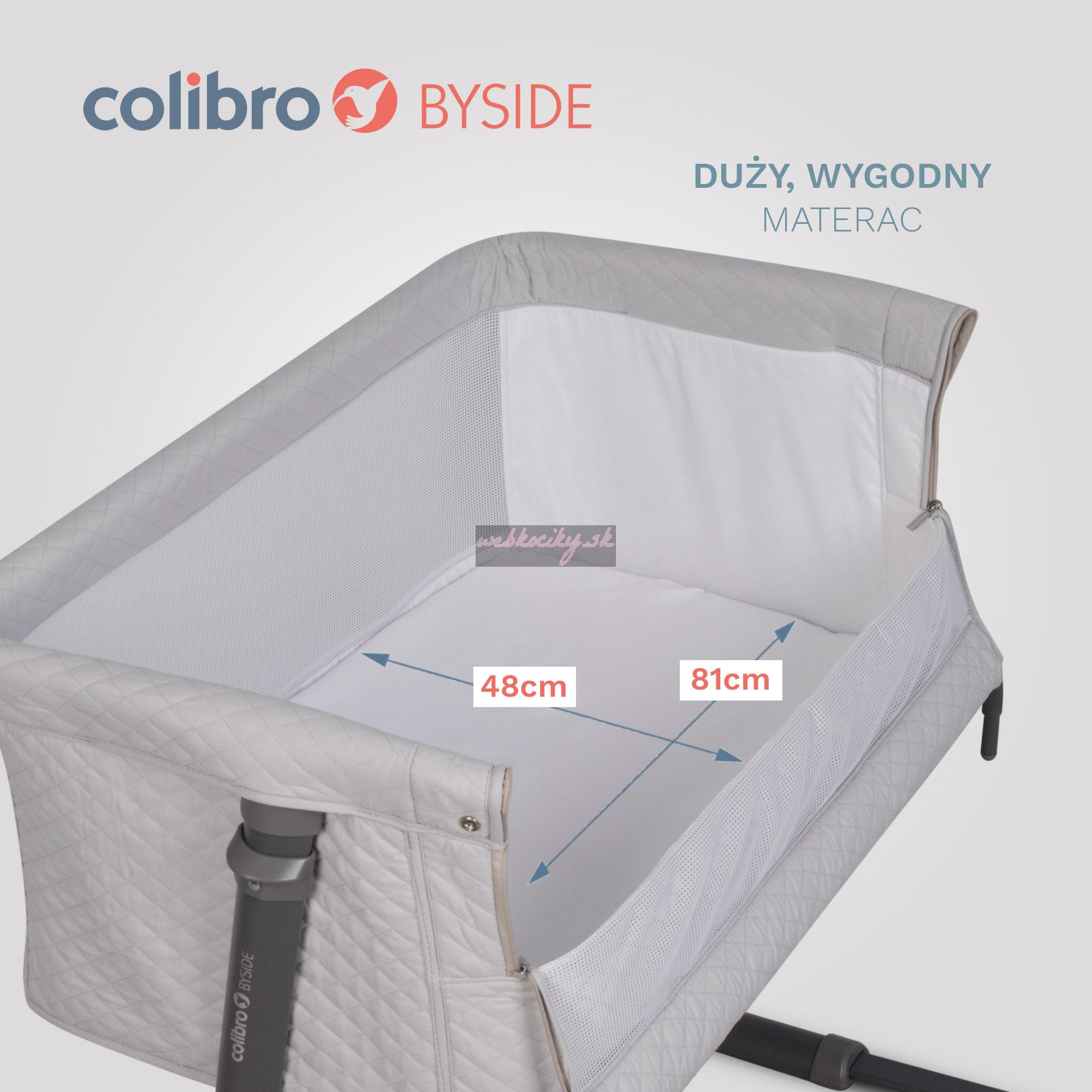 Postieľku Colibro Byside s odnímateľnou bočnou stranou je môžné jednoducho zaistiť o posteľ rodiča. Vďaka tomu budete mať lepšiu kontrolu nad dieťaťom a rýchly prístup pre jeho kŕmenie v noci. Postieľku je možné nastaviť do niekoľkých výškových pozícií alebo bezproblémov nakloniť.