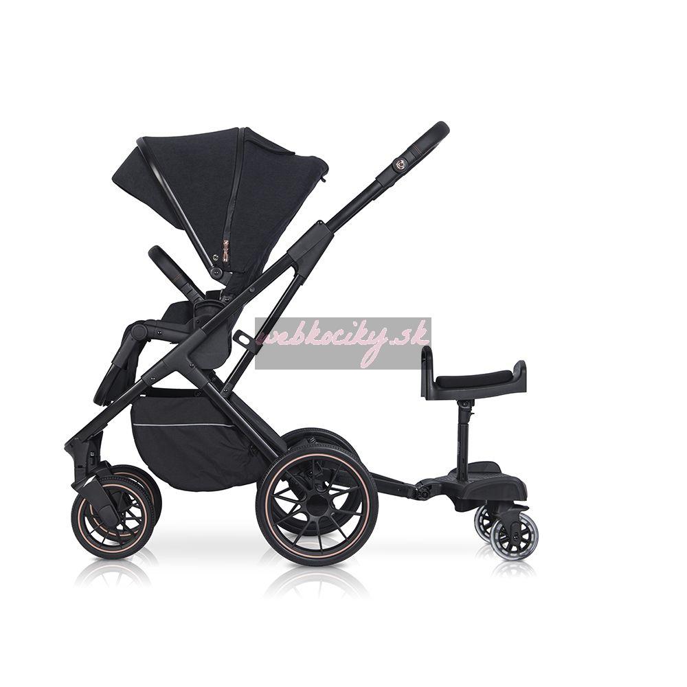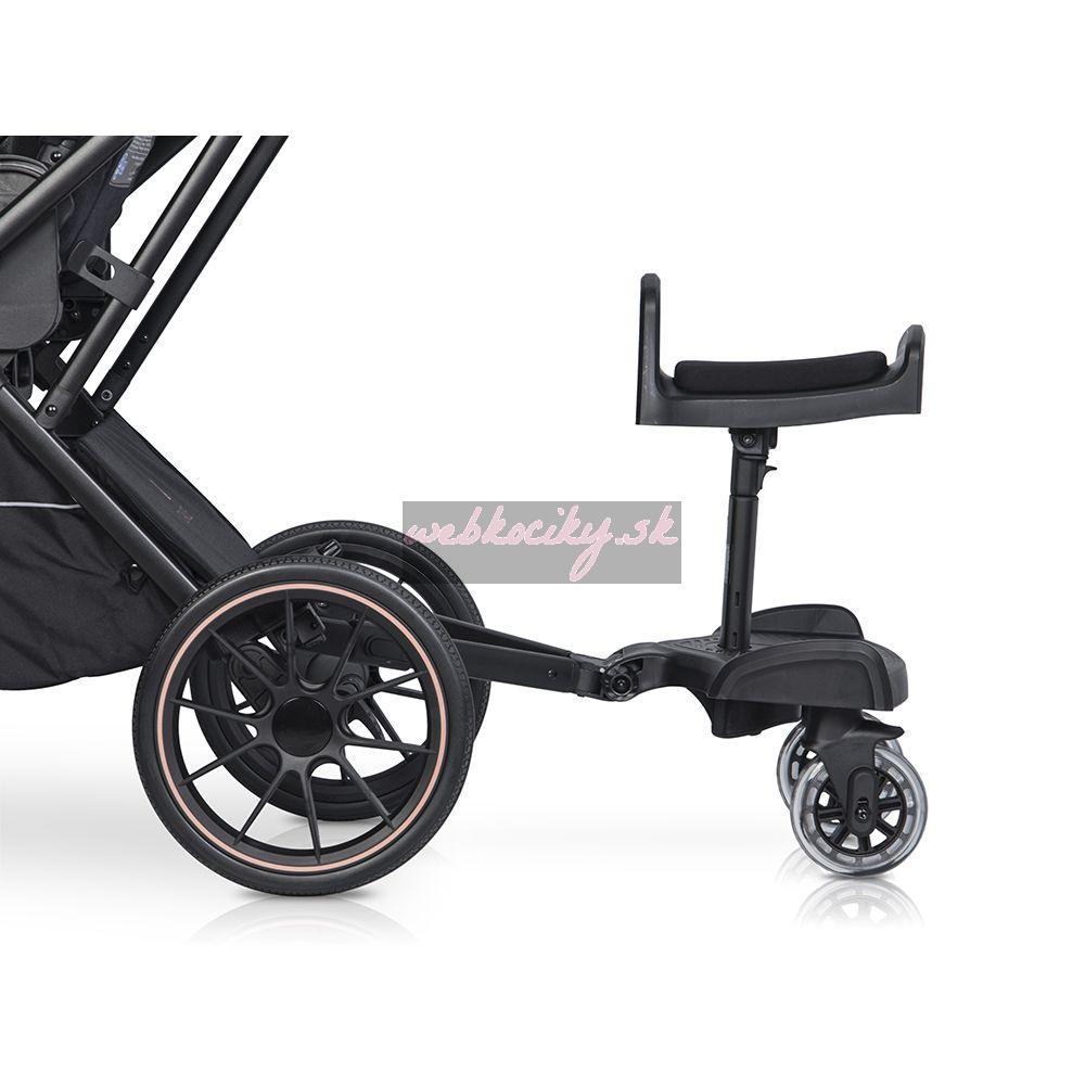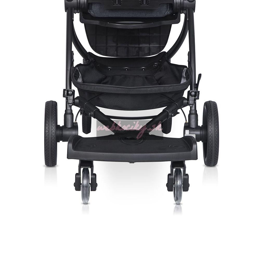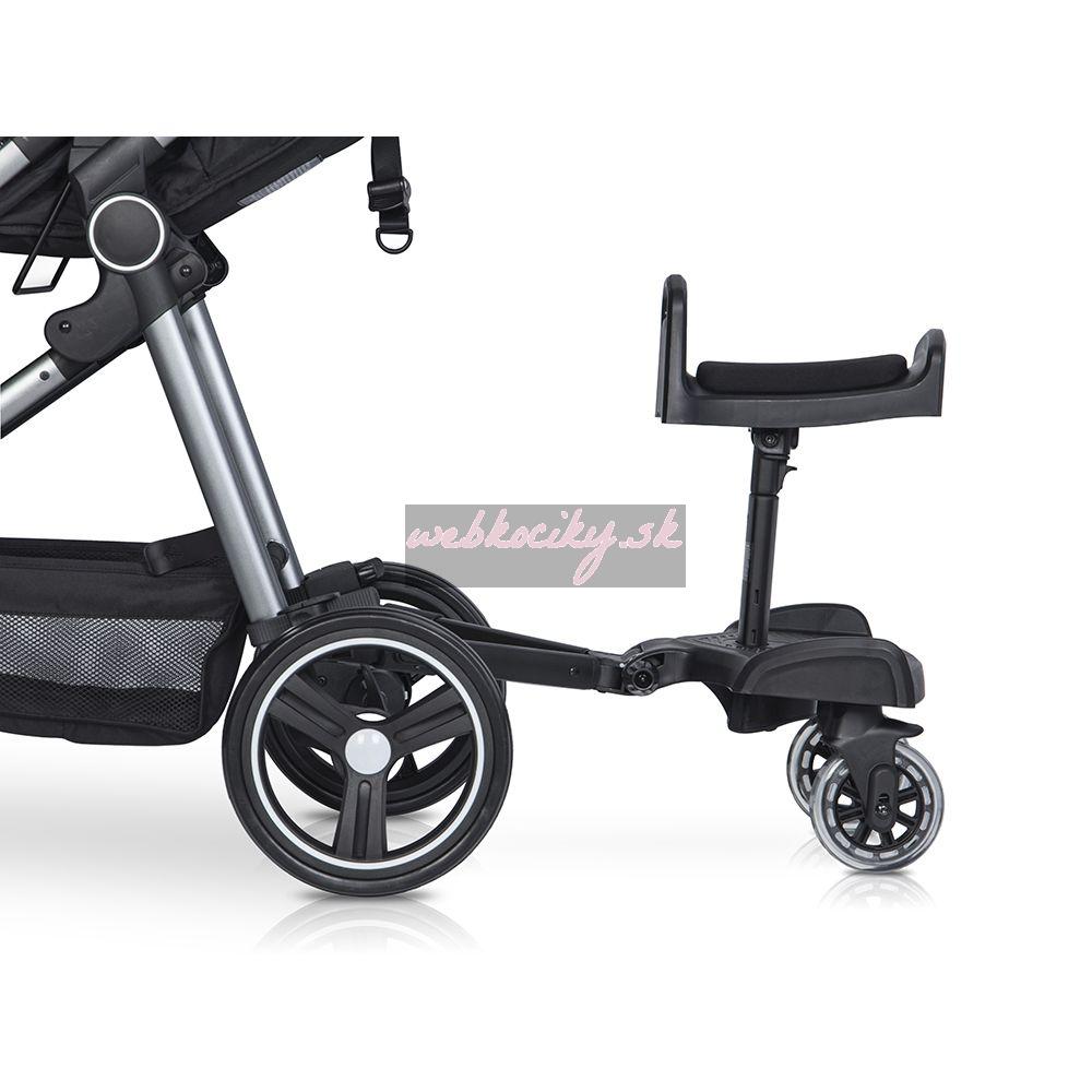 Stupienok Colibro Board for stroller je perfektné príslušenstvo k vášmu kočíku. Stupienok je vybavený rýchlym systémom uchytenia, sedadlom pre oddych a otočnými kolieskami pre komfortnú jazdu.