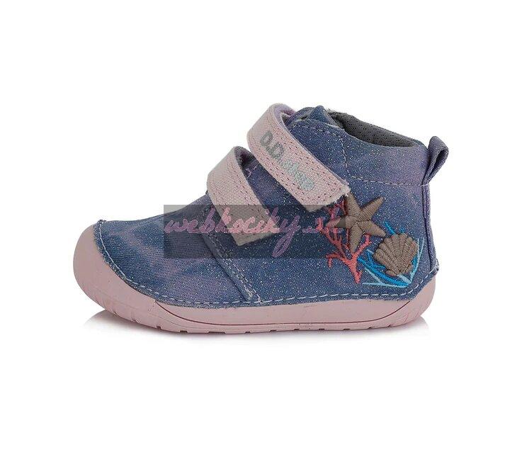 Detská dievčenská plátená obuv značky D.D. step, systém barefoot. Praktické zapínanie na suchý zips. Použité sú 100 % prírodné materiály.