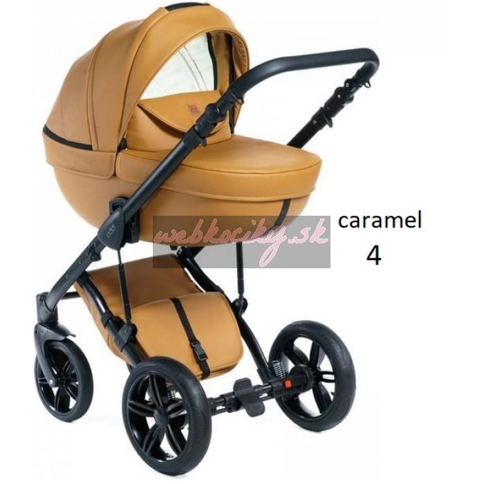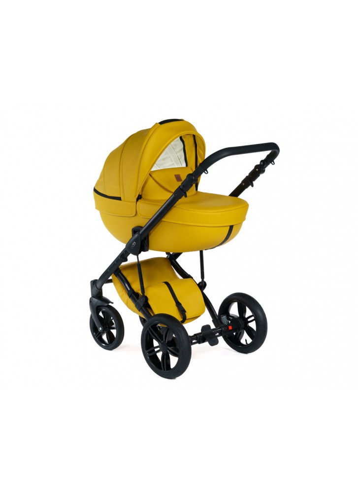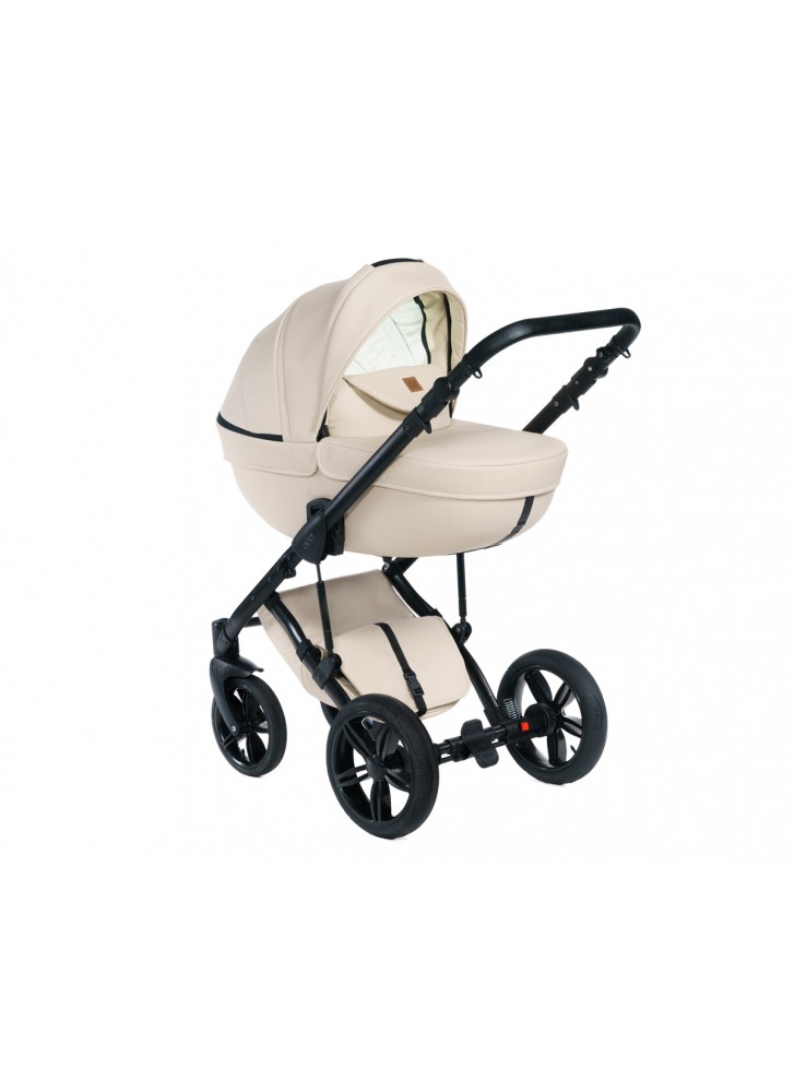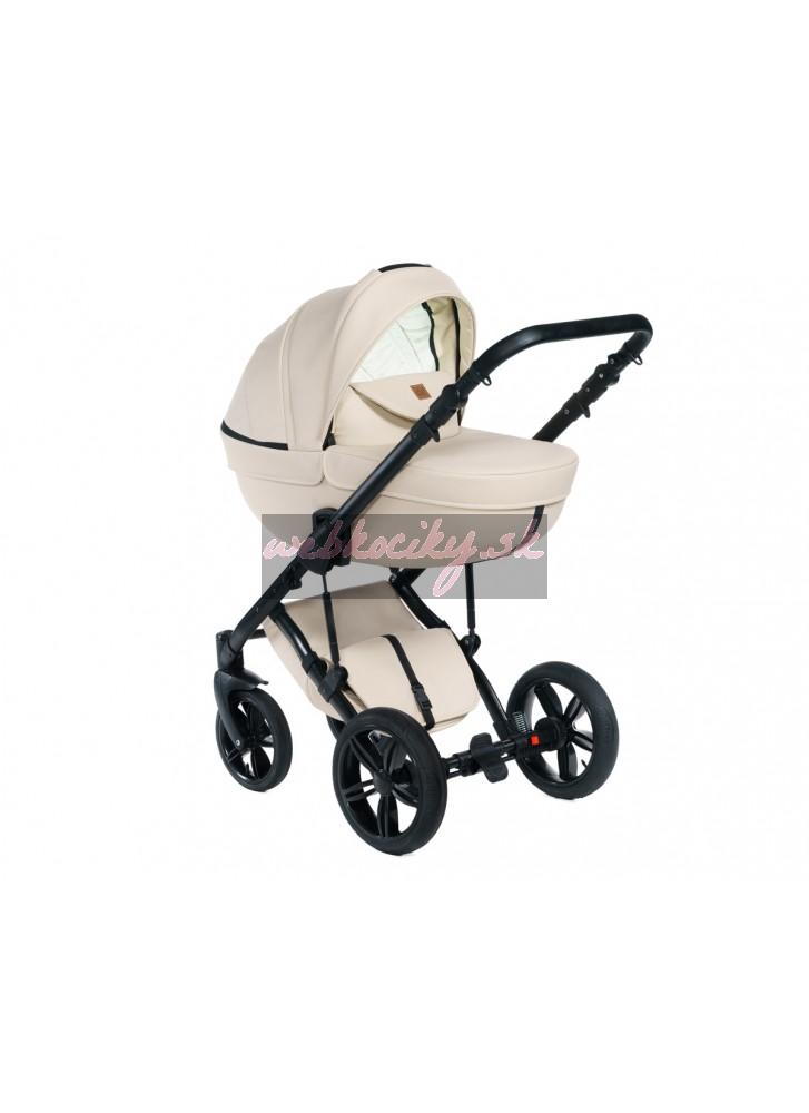 Kožené detaily v kombinácii s precíznou farebnou tkaninou, ktorá podčiarkuje jedinečnosť a atraktívny dizajn tejto kolekcie. Kočík má kvalitné nafukovacie kolesá, ktoré poskytujú komfort pri jazde a netreba sa báť defektu. Pohodlná a veľká nákupná taška je taktiež veľmi praktická v každodenných situáciách.