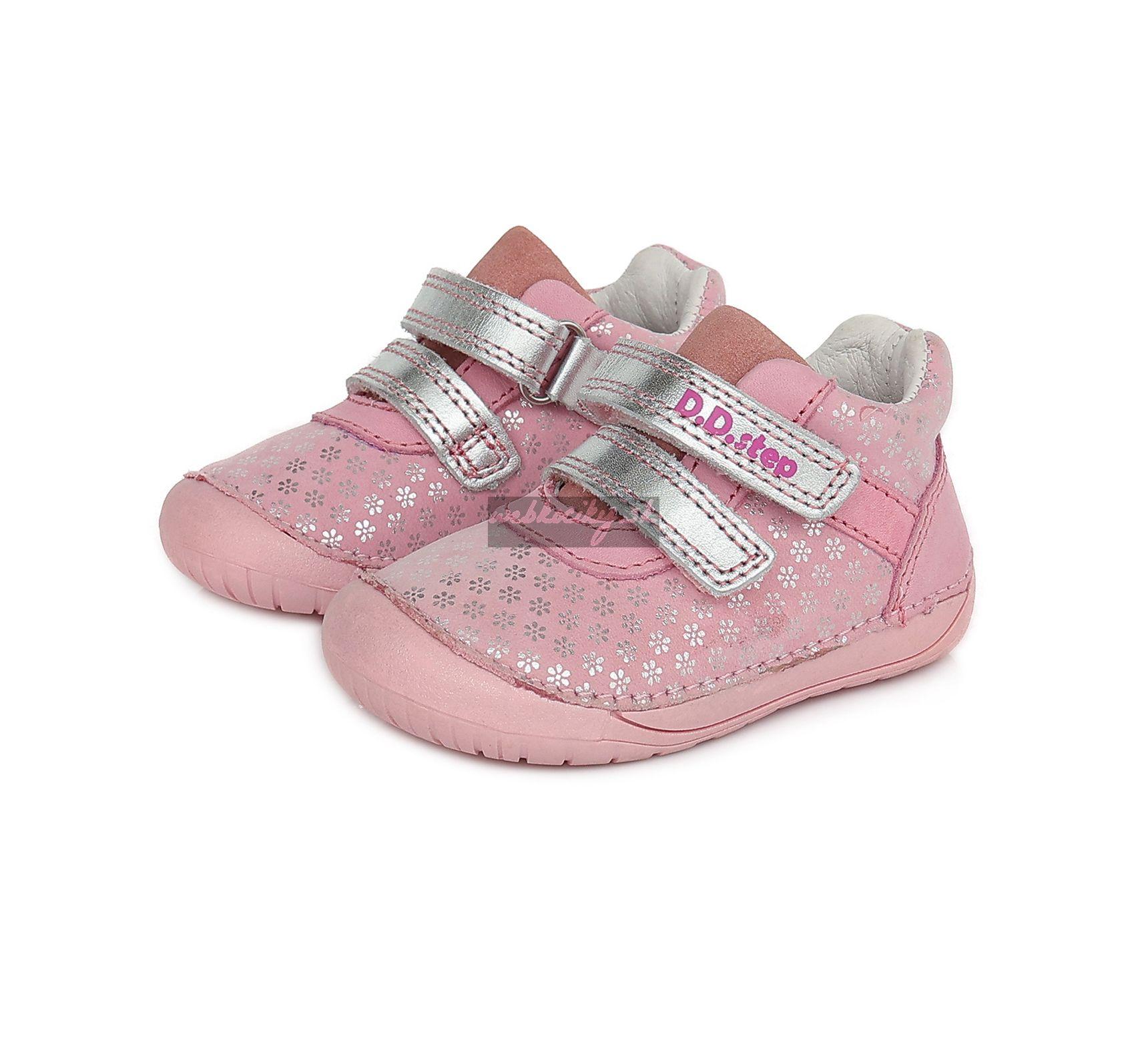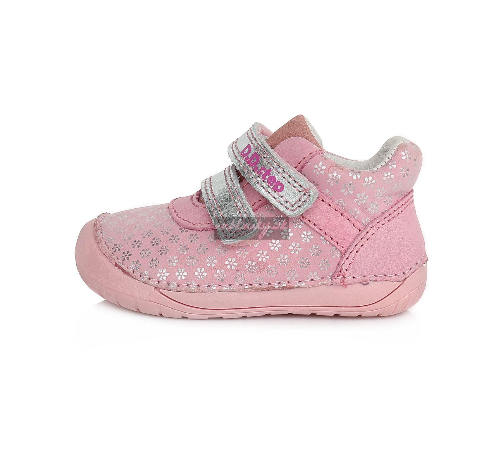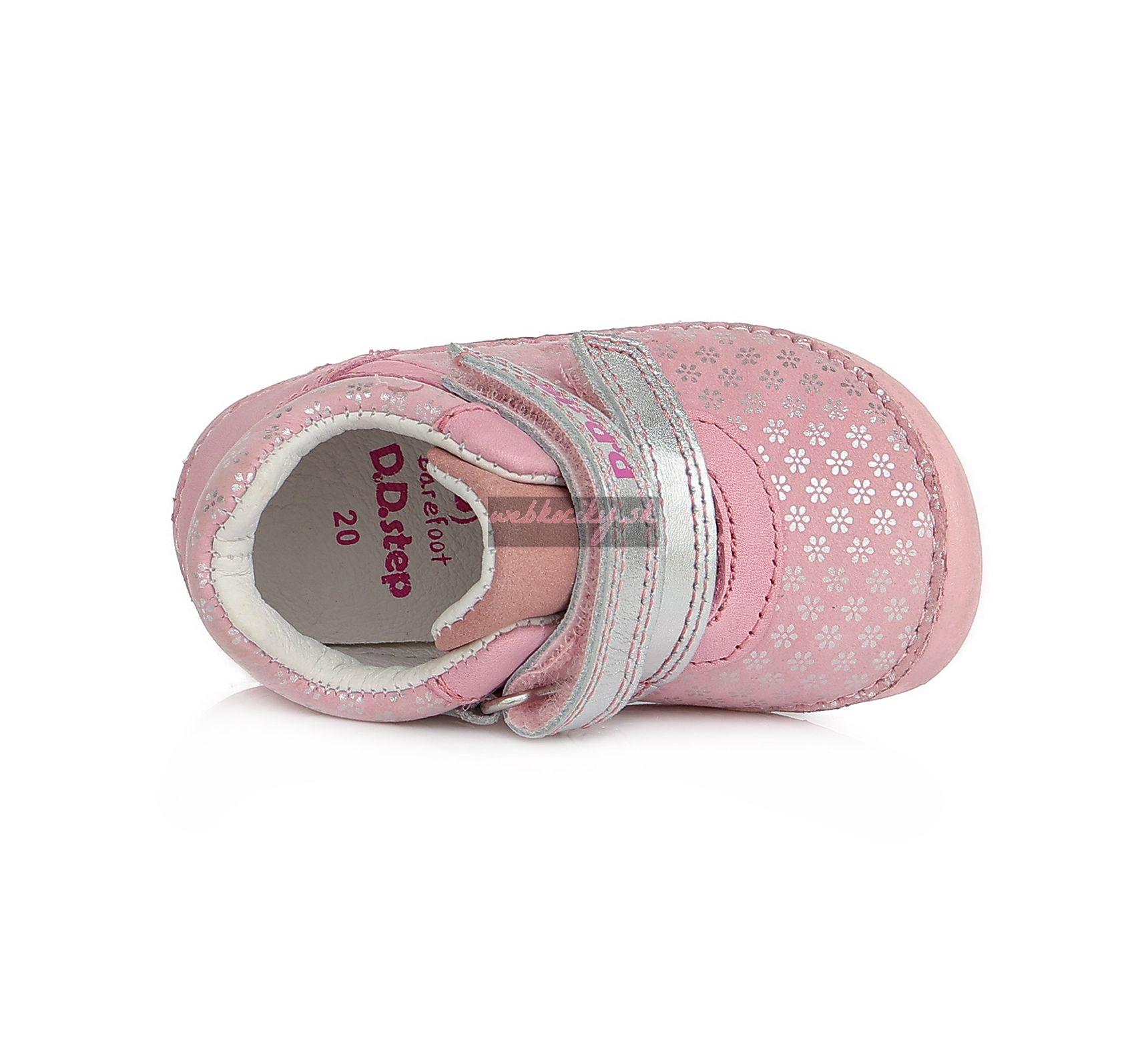 Detská kožená obuv-celorok, mäkká-flexibilná podrážka pre pohodlnú chôdzu a praktické zapínanie na suchý zips. Obuv je celokožená s koženou anatomicky tvarovanou stielkou z mäkkčenej kože najvyššej kvality aby bola pre deti maximálne pohodlná a je vyberateľná. Podrážka je lepená a aj šitá najmodernejšou 3D technológiou. Obuv D.D.Step je odľahčená, ohybná a pri prstoch širšia , bare foot obuv. Dľžky stielok: