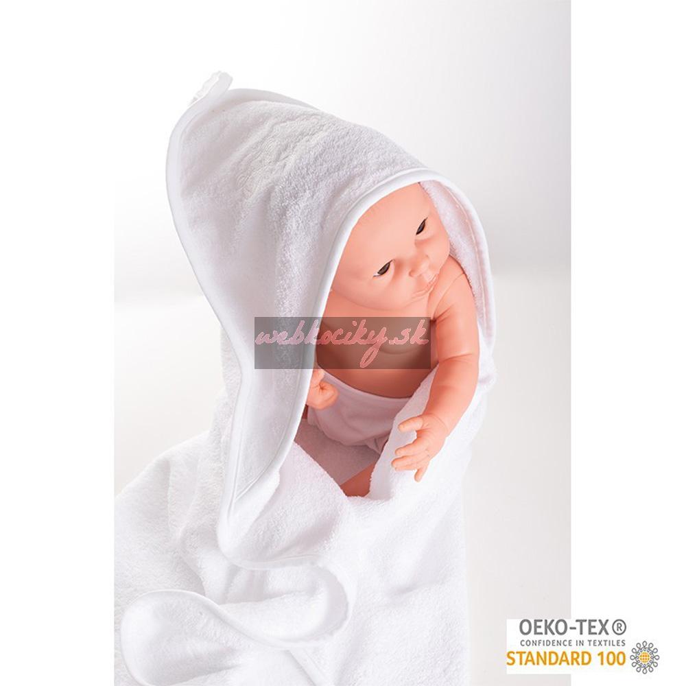 Krásna detská froté osuška s kapucňou, vyšívaným obrázkom a rukavicami na kúpanie.