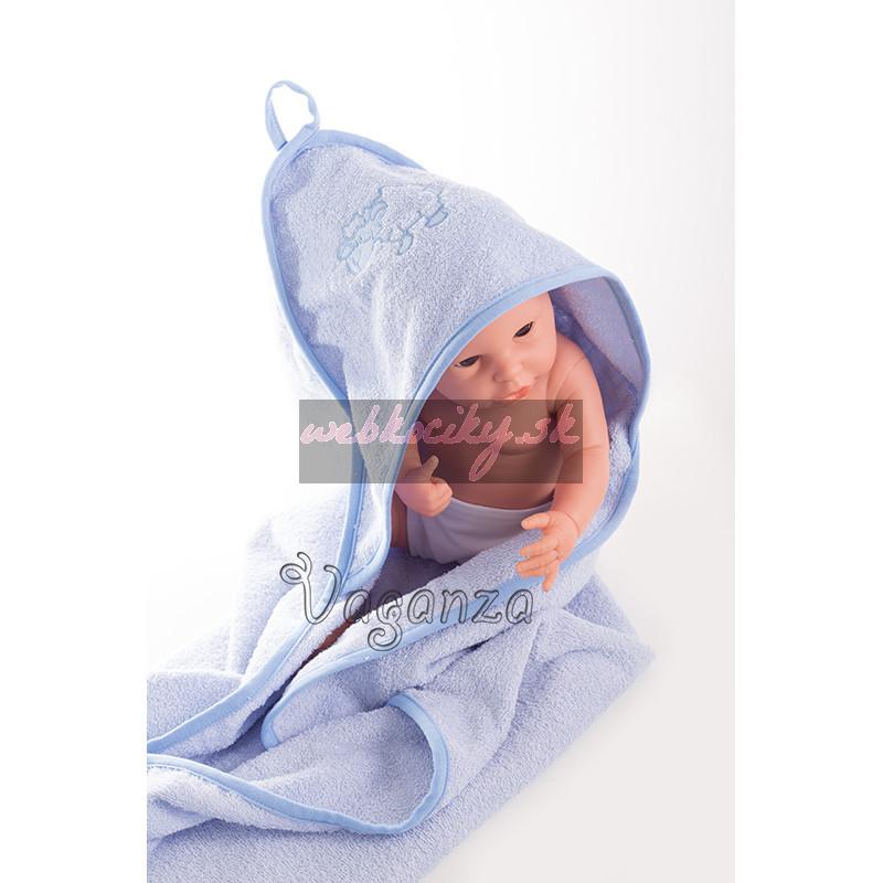 Krásna detská froté osuška s kapucňou, vyšívaným obrázkom a rukavicami na kúpanie.