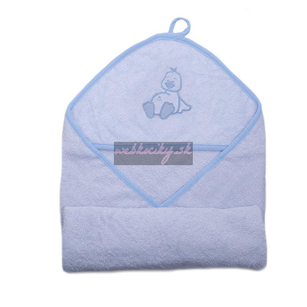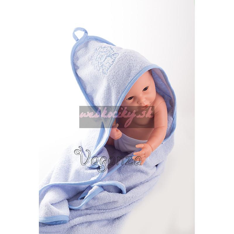Krásna detská froté osuška s kapucňou, vyšívaným obrázkom a rukavicami na kúpanie.