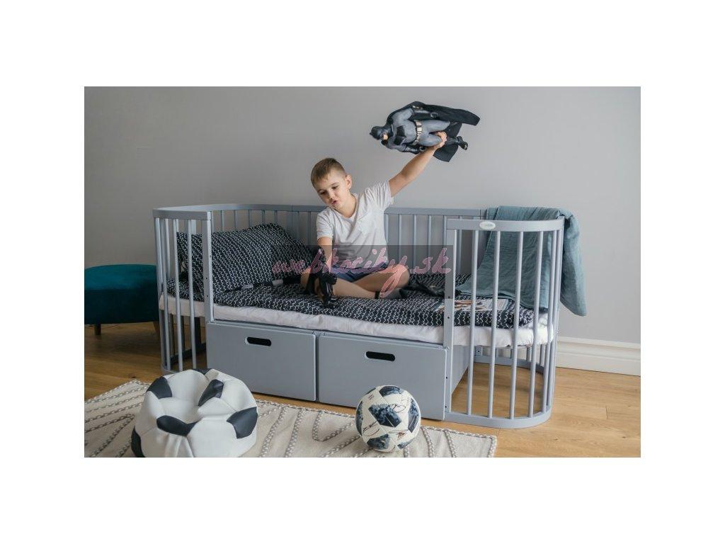 Detská rastúca postieľka 9v1 oval grey + Set