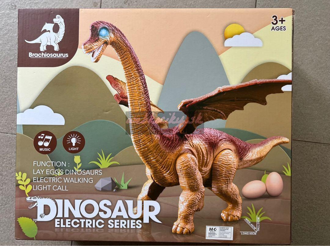 - Dinosaurus chodí rovno, vydáva zvuk, svieti mu oči a dokáže znášať vajcia