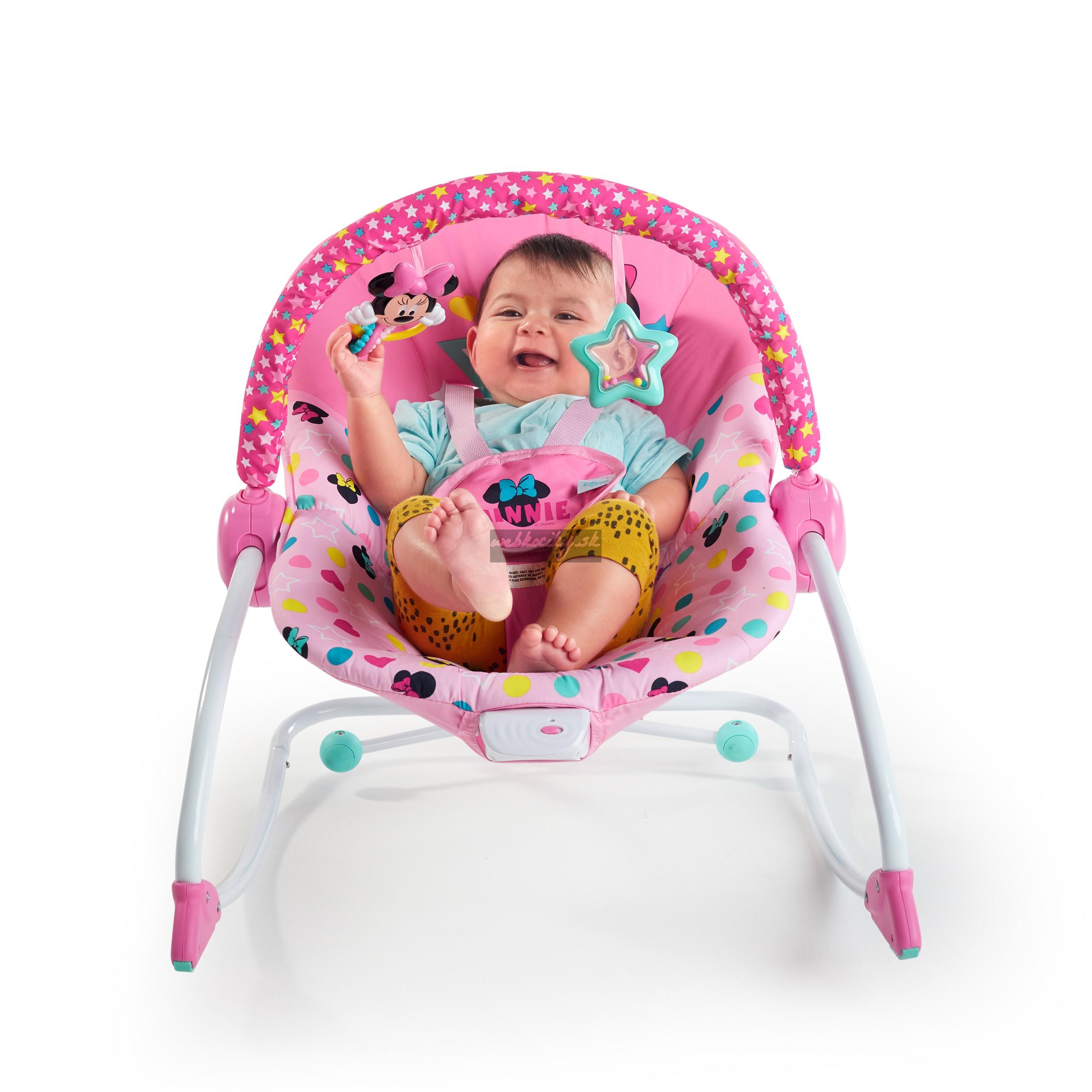 Nekonečnú zábavu pre vaše bábätko alebo väčšie princezničky prináša húpatko Minnie Mouse Stars & Smiles Baby od Bright Starts, ktoré ohúri aj rodičov svojou funkčnosťou a praktickosťou. Toto jedinečné húpatko ponúka 2v1, nakoľko umožňuje dve nastaviteľné polohy pre maximálne pohodlie vášho dieťatka. Stacionárna poloha je vhodná pre batoľatá, pričom použitím jednoduchého zadného výklopu dostanete húpatko do polohy pevného sedadla. Toto ohromujúce húpatko má všetky utišujúce funkcie, ktoré vaše dieťatko potrebuje – ako utišujúce vibrácie, pútavá hudba, hlboké sedadlo a samozrejme zábavu s hračkami, ktoré visia z hrazdičky. Odnímateľná hrazdička ponúka vašim deťom hru s hračkami inšpirovanými Minnie Mouse. Sedacia časť je ľahko umývateľná a môžeme ju vložiť do práčky. Nekĺzavé nožičky a 5-bodový bezpečnostný pás udržuje detskú bezpečnosť počas celej doby zábavy vášho bábätka. Rovnako húpatko obsahuje zo zadnej strany výsuvné nožičky, ktoré umožňujú stabilizovať húpatko do stojacej polohy.