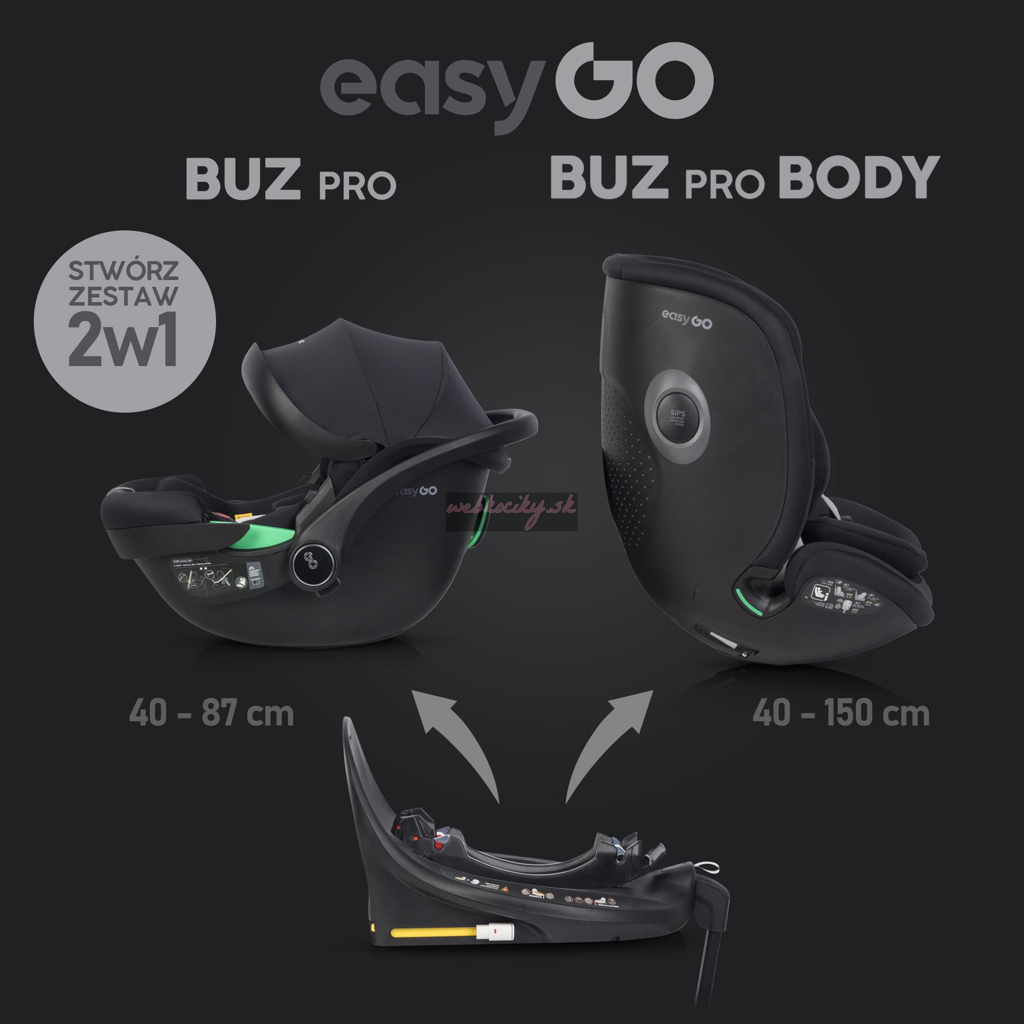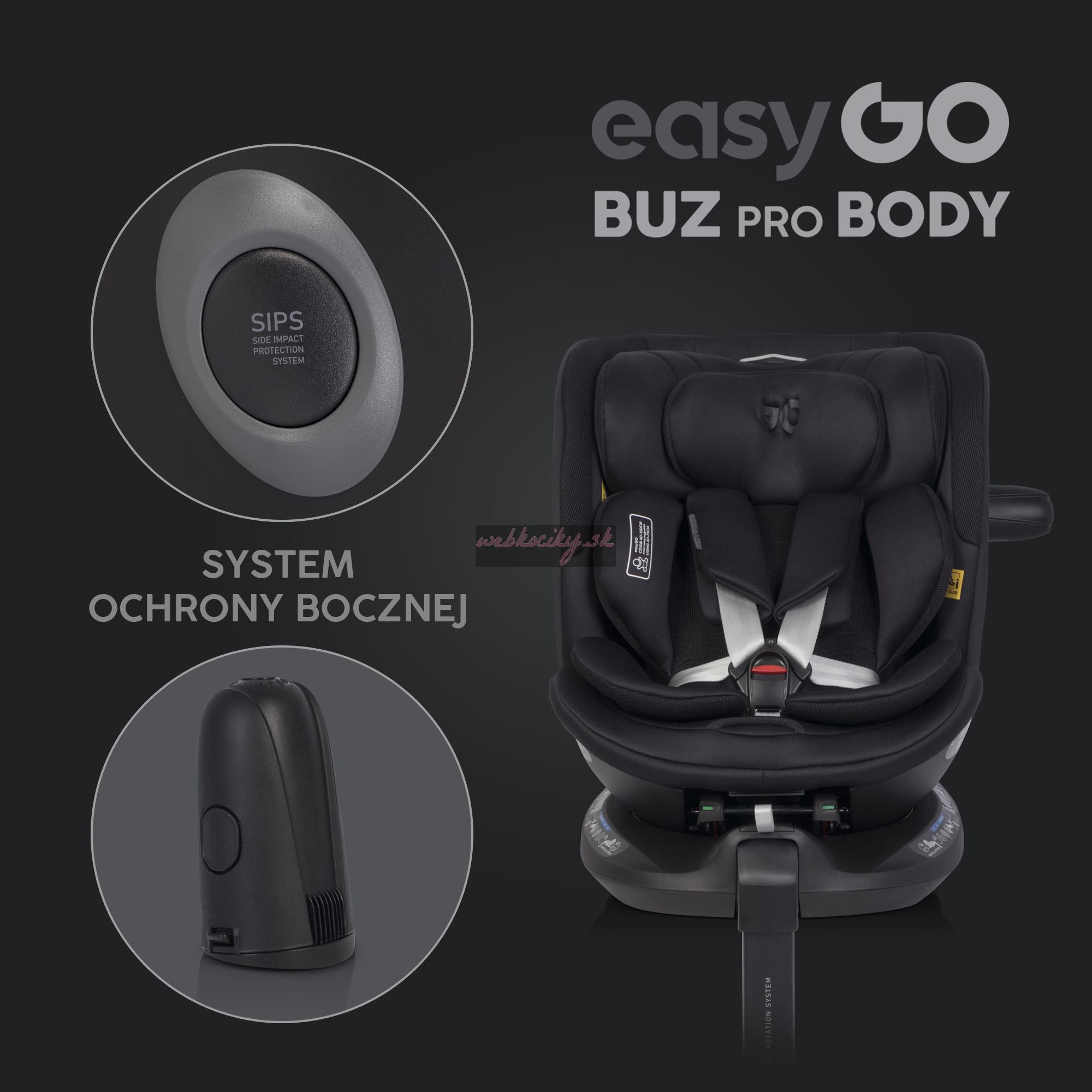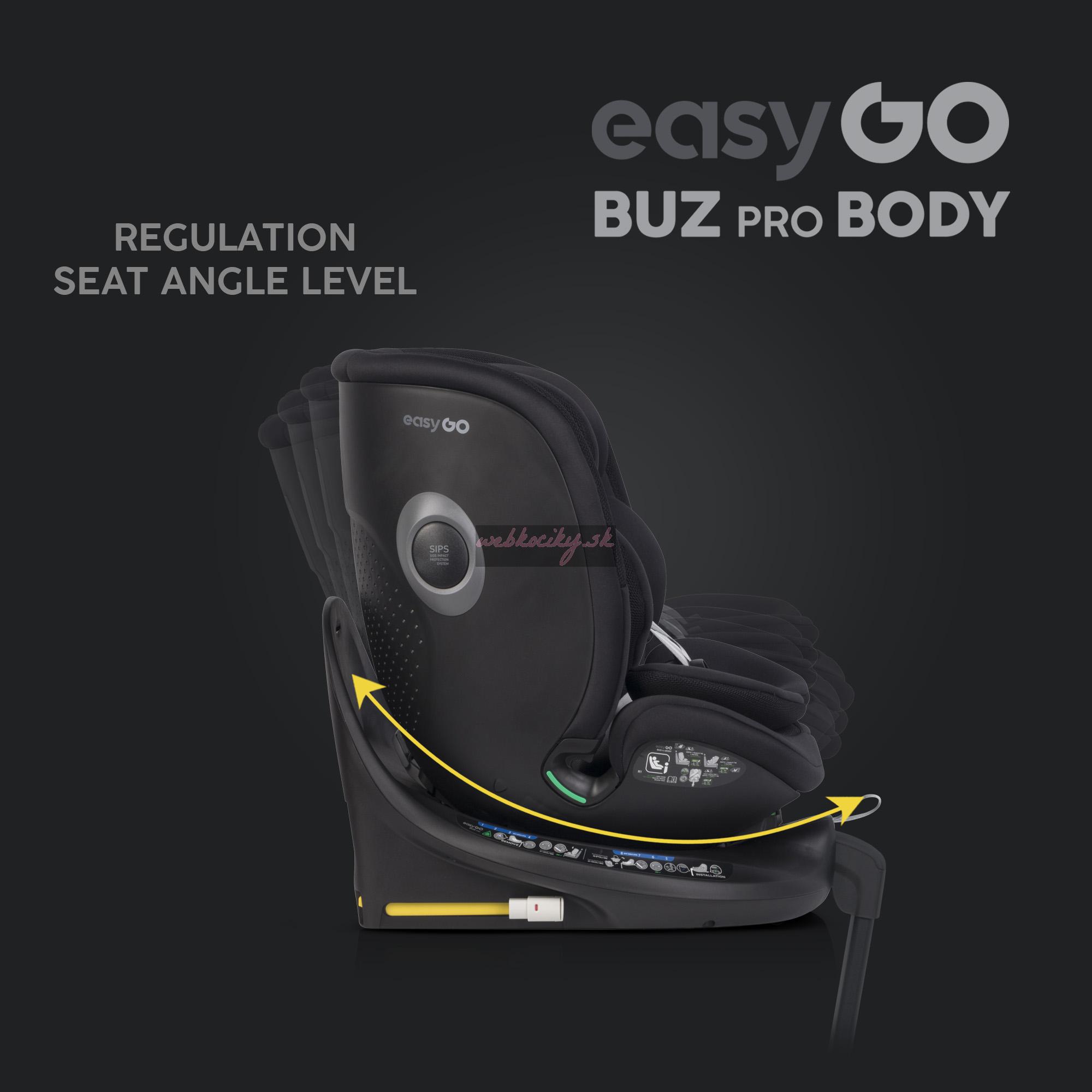 Autosedačka Buz Pro Body je súčasťou modulárneho setu, ktorý ponúka dlhodobé využitie. Buz Pro Body je pokračujúca sedačka, ktorá využíva rovnakú základňu ako vajíčko Buz. Je vybavená funkciou rotácie, ktorá je praktická najmä pri zaistení dieťaťa v autosedačke. Sedačku je možné taktiež polohovať do 4 pozícií a nastaviť až do 12 úrovní.