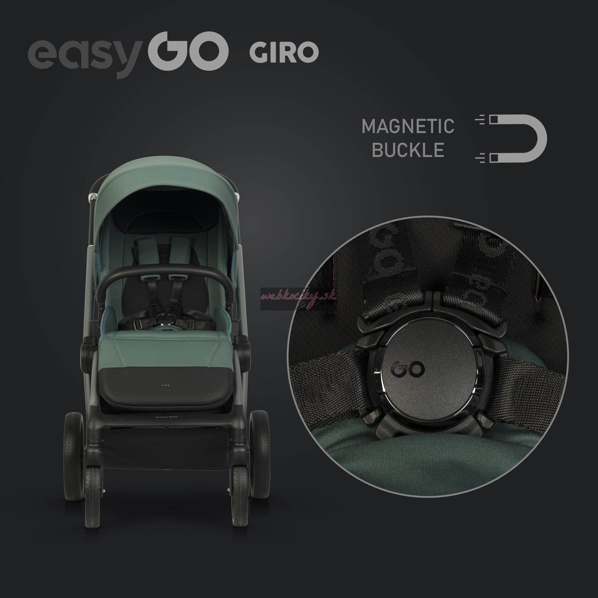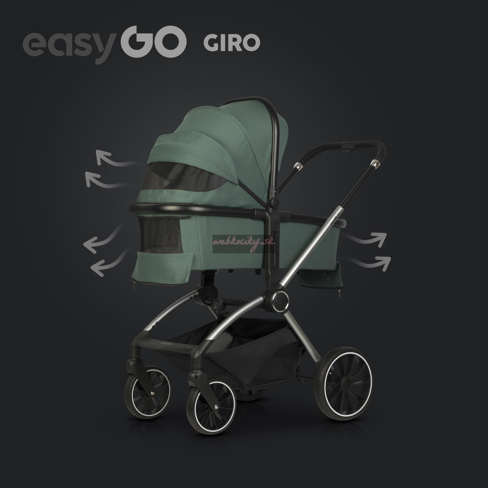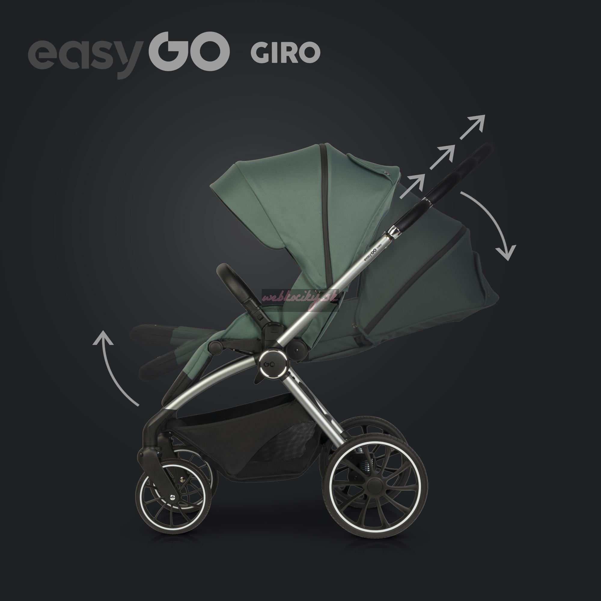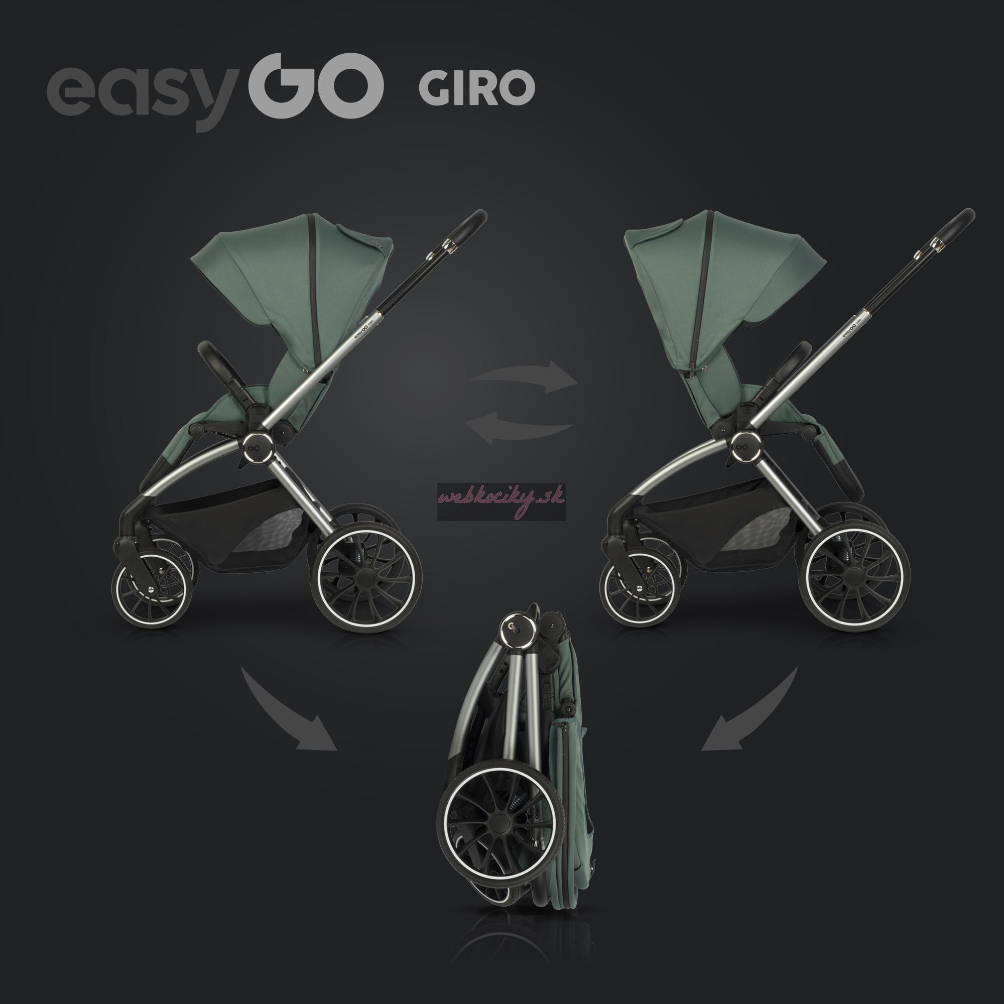 Hľadáte ľahký kočík s priestrannou športovou sedačkou, komfortnou vaničkou, bezúdržbovýmu kolesami so skvelým odpružením, ktorý sa navyše dá zložiť do kompaktných rozmerov? Nové Giro od Easy Go spĺňa všetky tieto kritériá. Tento kočík je ideálny na prechádzky mestom ale aj mimo neho. Je vybavený pohodlnou teleskopickou rukoväťou s veľkým rozpätím pre nízkych aj vysokých rodičov. A vďaka modernému systému skladania je možné kočík zložiť spolu so športovou sedačkou, bez ohľadu na to v akom smere je osadená.