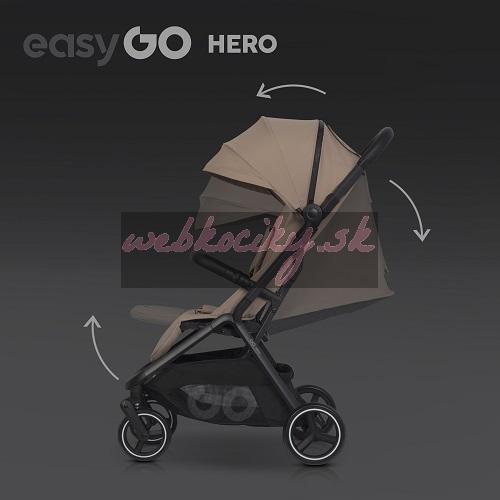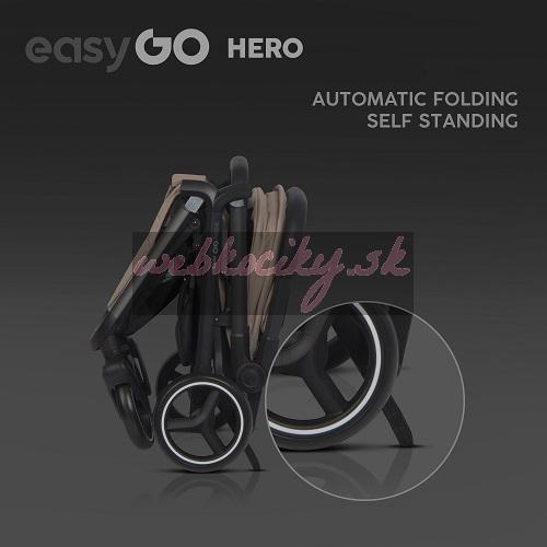 Ak hľadáte pre svoje dieťa ľahký a kompaktný kočík s priestranným sedadlom, Hero je skvelou voľbou. Tento model disponuje automatickým systémom skladania, vďaka ktorému sa kočík zloží sám do voľne stojacej polohy. Po zložení navyše získate jednoduchý prístup k madlu, ktoré zároveň slúži ako rukoväť pre prenos. Vďaka tomuto inovatívnemu riešeniu je Easy Go Hero ideálny pre aktívnych rodičov, ktorí často skladajú a prenášajú kočík.