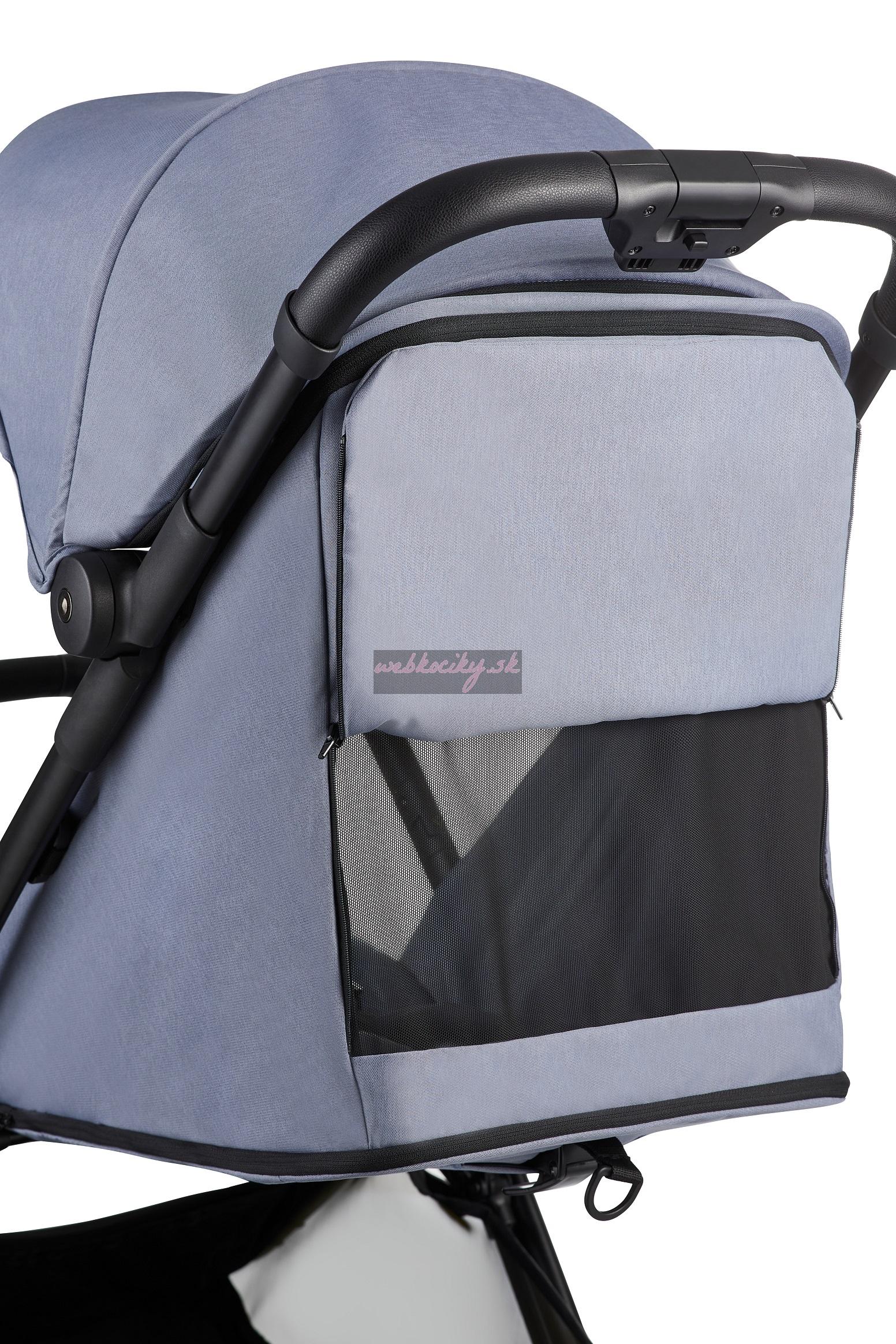- štýl kočíka podčiarkuje rukoväť a madlo z ekokože