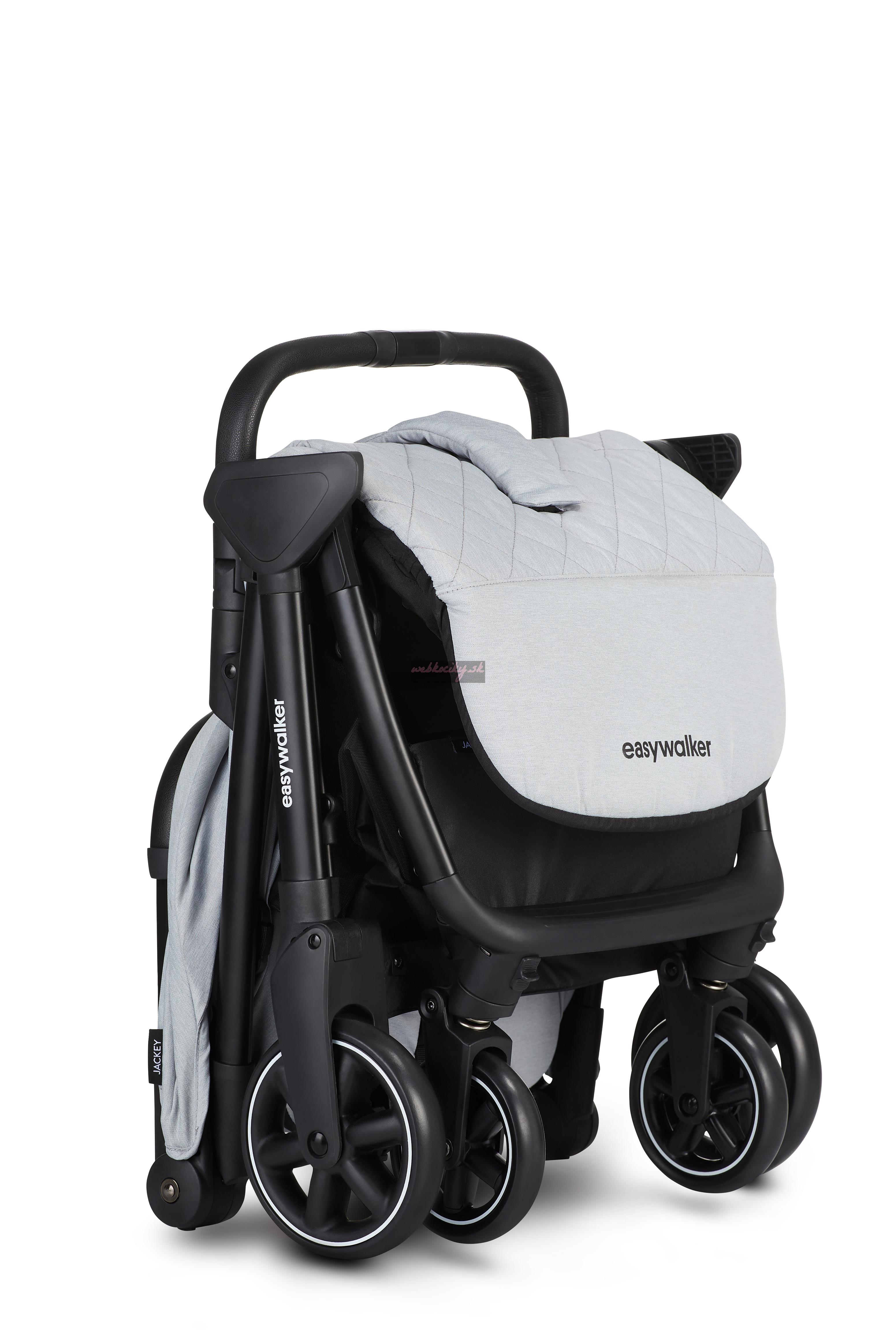 Športový kočík Jackey pod značkou Easywalker je určený pre každého rodiča, ktorý dokáže oceniť jedinečný štýl a nadčasovú jednoduchosť. Iba jedno stlačenie umožní poskladať tento kočík do kompaktného, ľahkého a samostatne stojacieho balíčka.