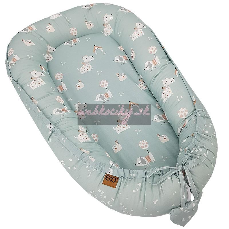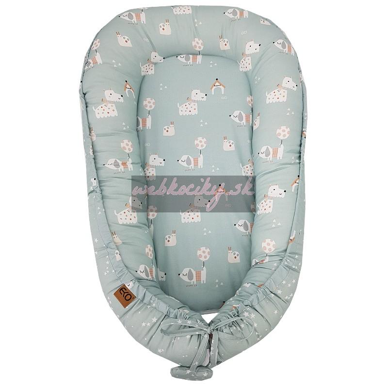 EKO Hniezdo pre bábätko obojstranné bavlnené Dogs Stars Mint 90x60 cm